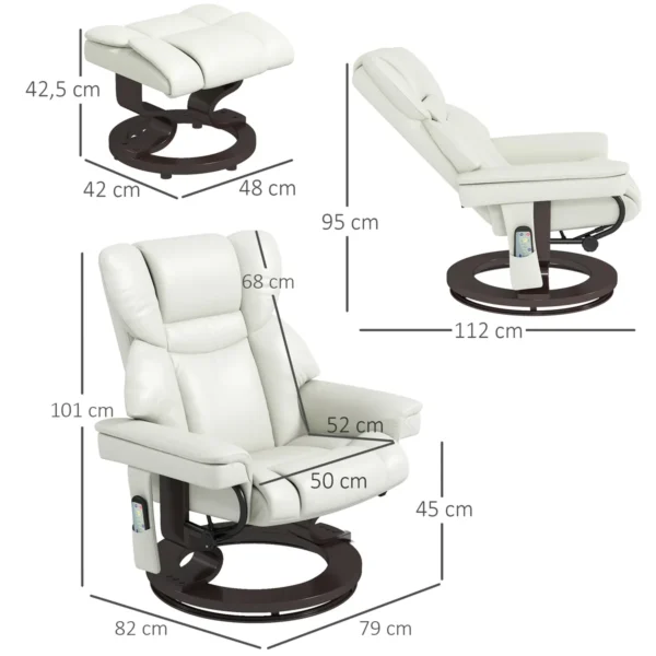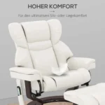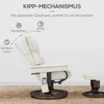 Šioje HOMCOM atlošimo kėdėje su kėdute greitai pamiršite kasdienio gyvenimo įtampą. Dešimties masažo taškų galite atpalaiduoti visą kūną. Kino sėdynės atlošo kampas yra iki 145°. Atlošas, sėdynės pagalvėlė, porankiai ir kojų atrama yra užpildyti putplasčiu, puikiai tinka maloniam vakarui, nesvarbu, ar žiūrite televizorių, skaitote ar miegate. Gultą taip pat galima pasukti 360°.