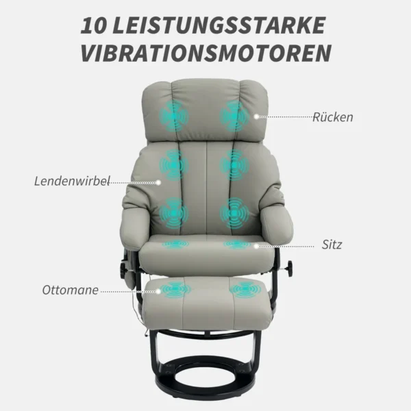 Atraskite masažo kėdžių įvairovę. Mūsų masažinė kėdė HOMCOM siūlo ne tik komfortą, bet ir išskirtines atsipalaidavimo akimirkas. Su 10 vibracijos taškų jis atpalaiduoja raumenis ir garantuoja gilų atsipalaidavimą. Itin minkštas paminkštinimas ir kokybiškos medžiagos kartu su masažo funkcija užtikrina aukščiausios klasės komfortą.