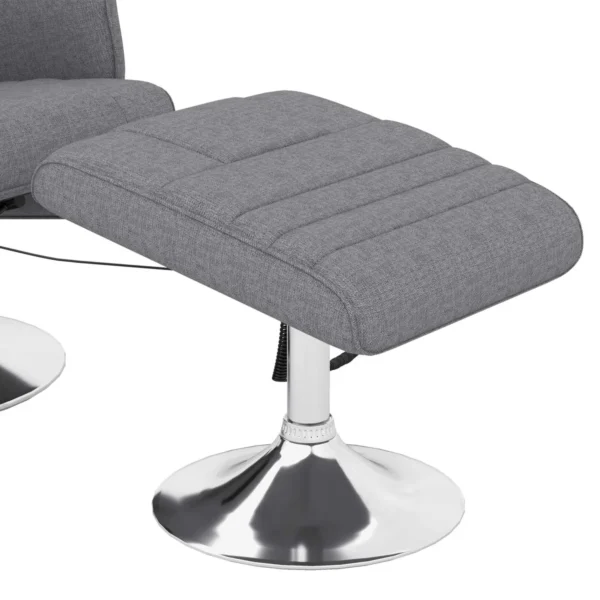 Po įtemptos dienos galite atsisėsti, atsipalaiduoti ir mėgautis maloniu masažu šioje HOMCOM atlošiamoje kėdėje. Masažo taškai lepina nugarą, juosmeninę stuburą, šlaunis ir kojas. Galite pasirinkti automatinę masažo funkciją iš anksto užprogramuotiems masažams arba rankinį skirtingų masažo zonų pasirinkimą pagal savo pageidavimus. Šis komplektas, kurį sudaro atlošas ir pufas, siūlo atsipalaidavimą paspaudus mygtuką ir kviečia pailsėti bei pasilikti.