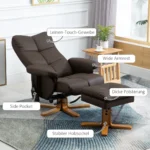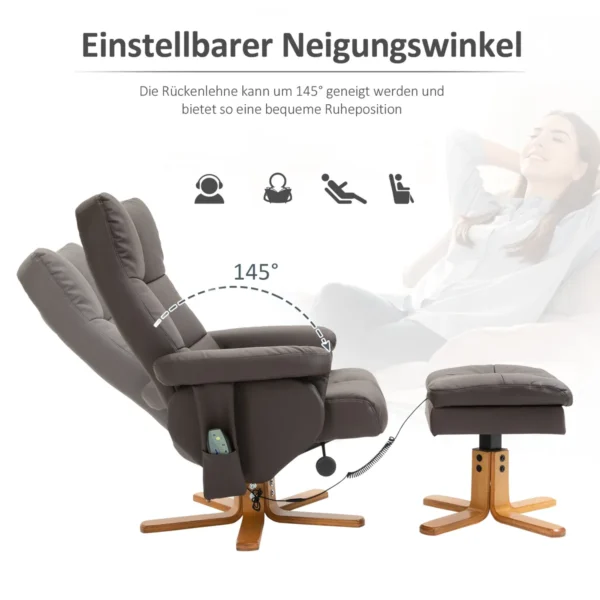Ši HOMCOM masažinė kėdė ne tik gerai atrodo, bet ir stebina integruota masažo funkcija. Mėgaukitės atpalaiduojančiu masažu ir jaukiomis valandomis. Papildomo komforto suteikia reguliuojamas atlošas ir kėdutė kojoms. Dirbtinės odos viršus taip pat suteikia kėdei elegantišką išvaizdą. Ypatingas priedas: kėdutė kartu atlieka ir kaip laikymo dėžutę!