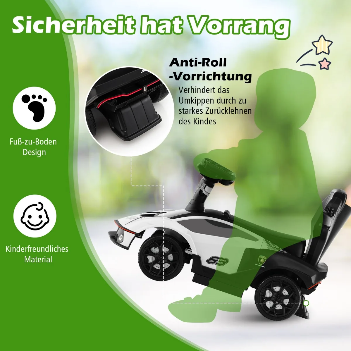- 1 x važiuojamasis automobilis su rankena