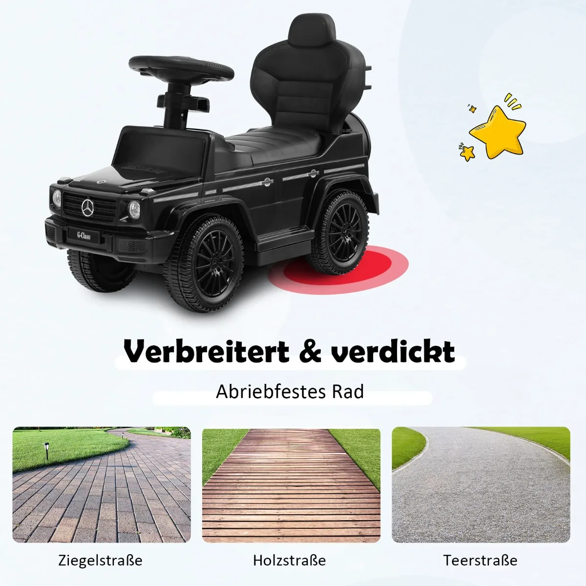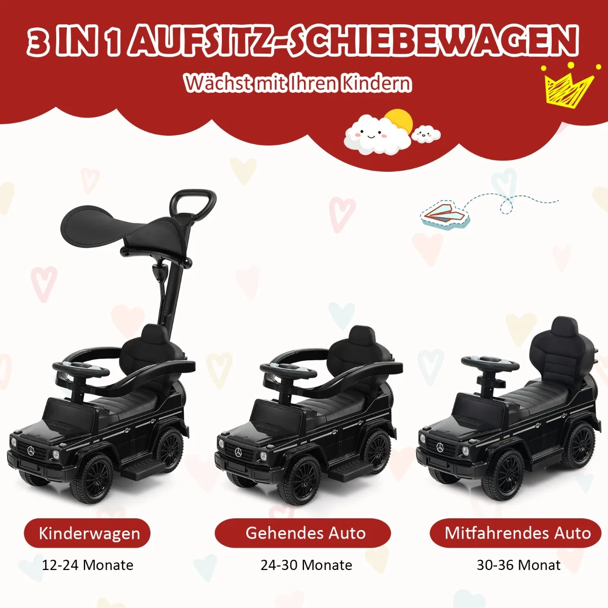 Mašina stumdukas su rankena 87x35x95cm, juodos spalvos yra specialiai pritaikyta 1-3 metų vaikams. Šis važiuojamasis vežimėlis, sukurtas pagal licencijuotą Mercedes-Benz G350 modelį, leidžia vaikams saugiai ir smagiai mokytis vaikščioti bei važiuoti įvairiais būdais.