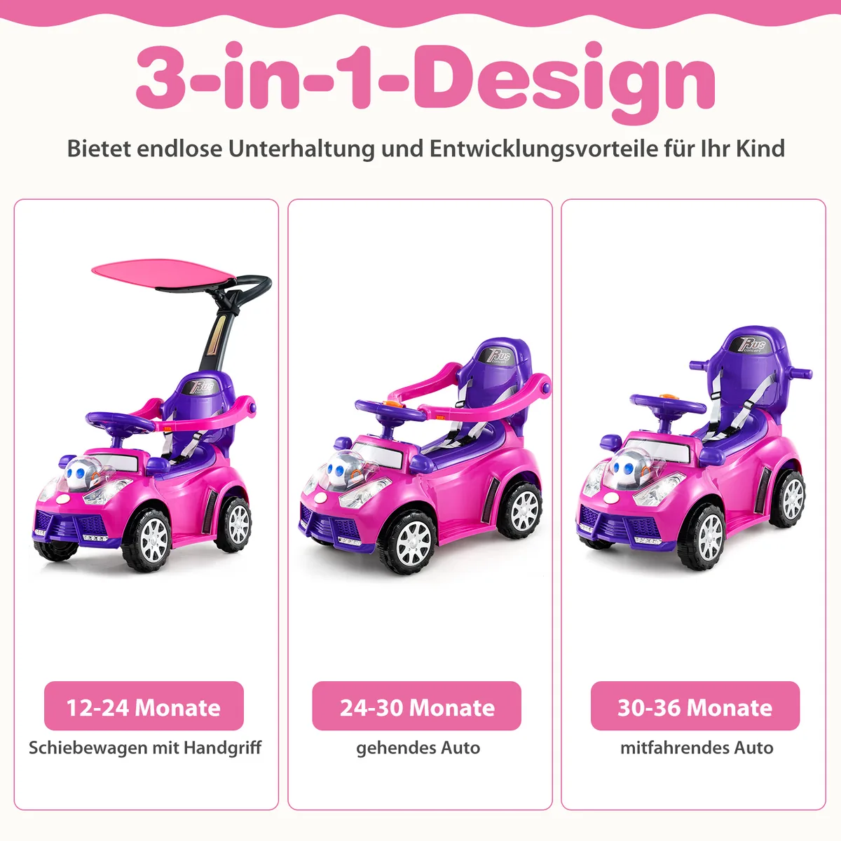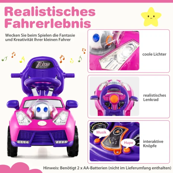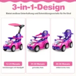 Mašina stumdukas su rankena 97x40x90cm, rožinės ir violetinės spalvos, skirta mažiems vaikams nuo 12 mėnesių. Ši važiuojama transporto priemonė padeda vaikams lavinti motoriką ir suteikia saugią bei interaktyvią pramogą namuose ar lauke.