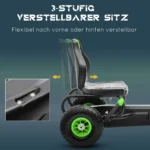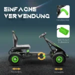 Vaikai, važiuojantys fantastišku HOMCOM kartingu, niekada nenorės išlipti! Jaunieji vairuotojai valdo greitį mindami pedalus ir bus nustebinti greitu reagavimu bei tiksliu valdymu. Ergonomiška sėdynė yra reguliuojama, užtikrinanti patogią ir saugią sėdėjimo padėtį. Pedalinis automobilis gali būti naudojamas tiek viduje, tiek lauke ir padeda pagerinti koordinaciją bei jėgą.