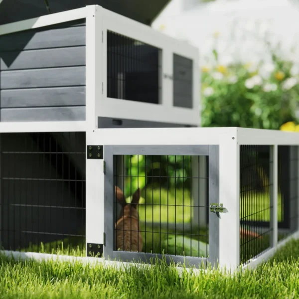 - ✔ Kelios triušių namelio durys užtikrina lengvą priėjimą