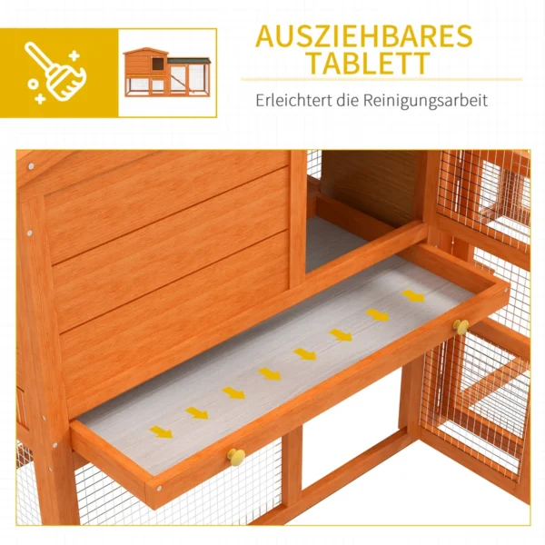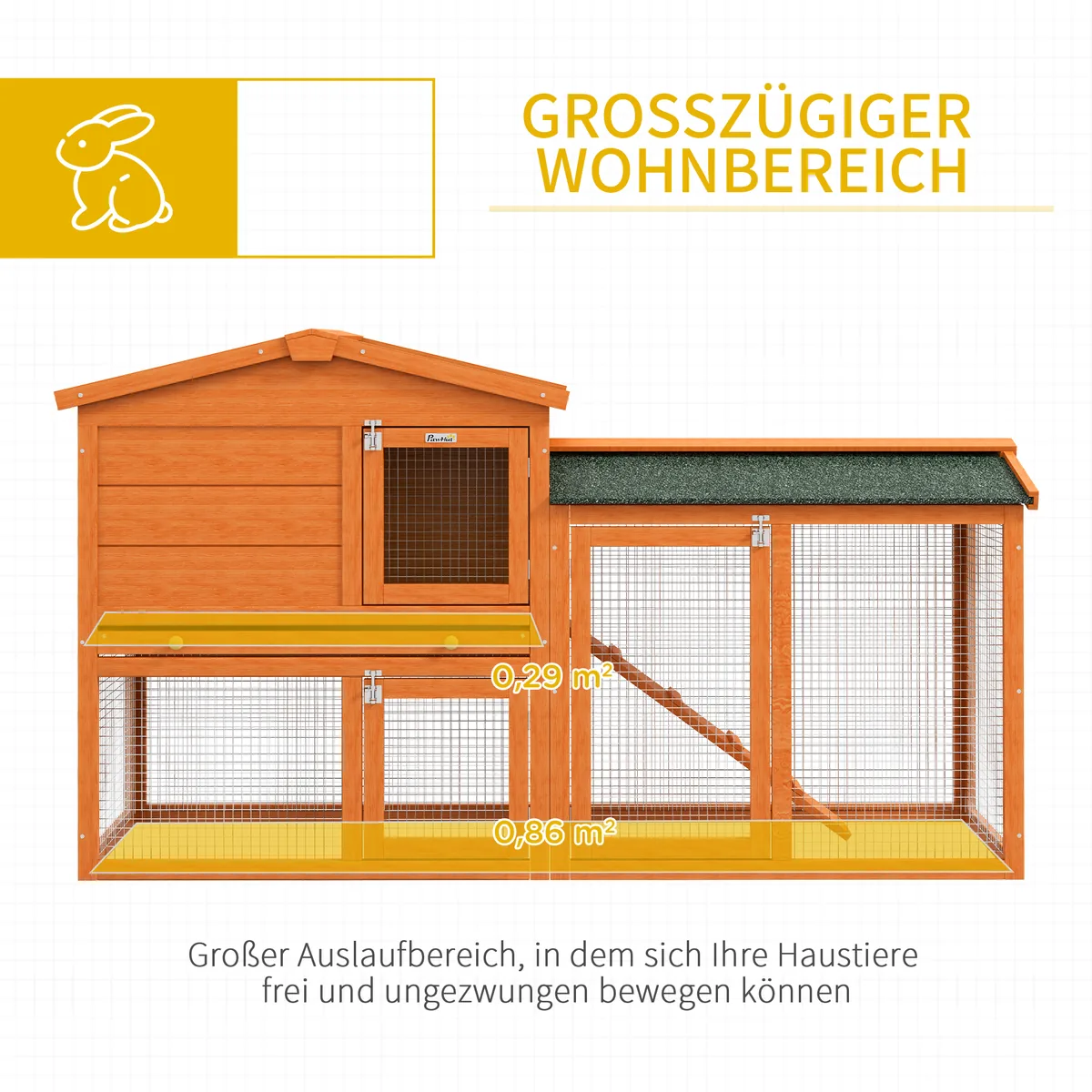 Patrauklus žiemai atsparus lauko triušių namelis PawHut garantuoja saugų ir patogų apgyvendinimą jūsų mažiems augintiniams. Žiemai atspariame lauko triušių namelyje yra jaukus namelis poilsiui ir erdvi, aptverta atvira aikštelė mankštai gryname ore. Smulkių gyvūnų aptvaro durys pagerina vėdinimą ir užtikrina lengvą prieigą.