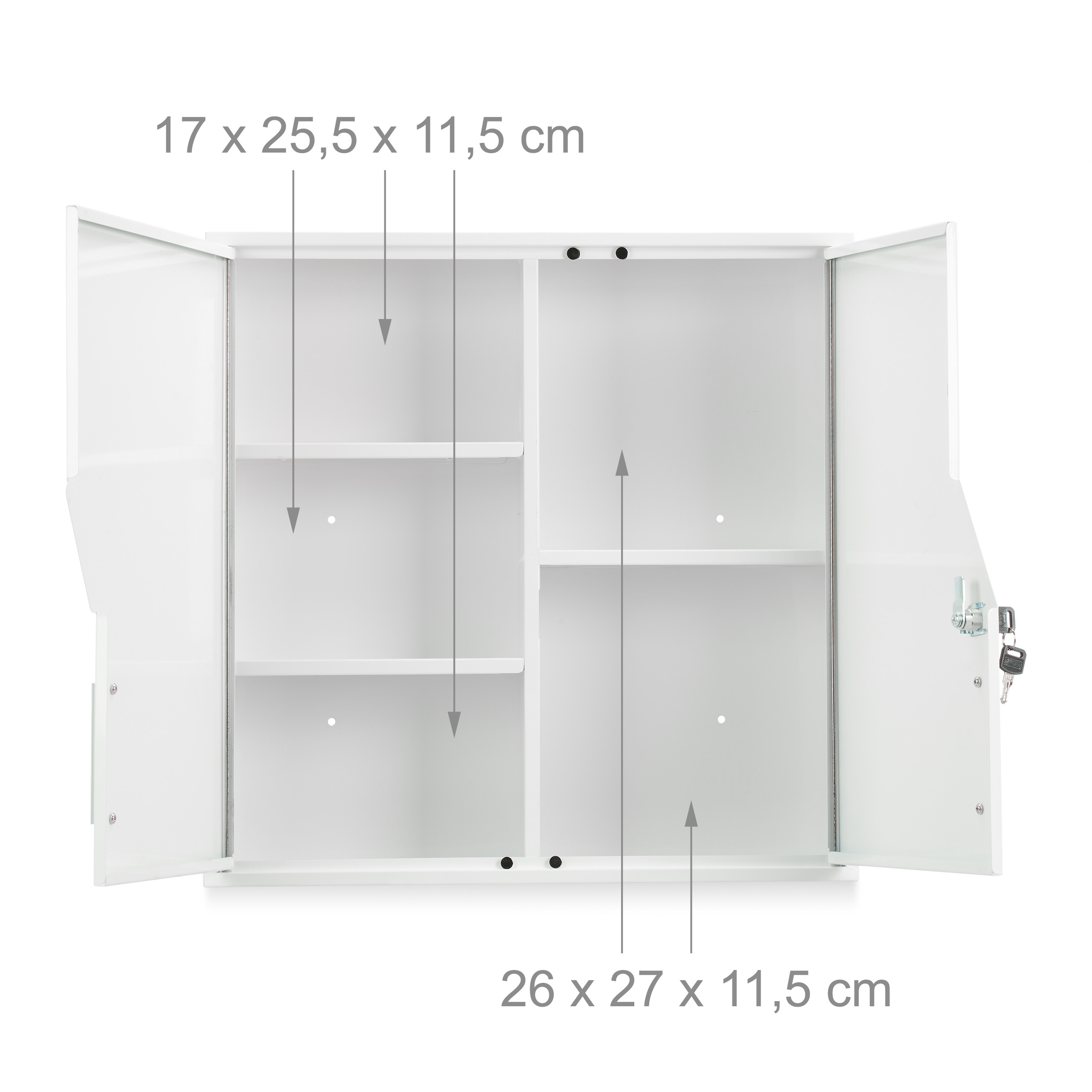 Užtikrinkite savo namų ar darbo vietos saugumą ir tvarką su šia elegantiška ir funkcionalia medicinine spintele. Ši didelė, rakinama vaistinė yra puikus sprendimas laikyti vaistus, tvarsčius ir pirmosios pagalbos priemones lengvai pasiekiamoje vietoje.
