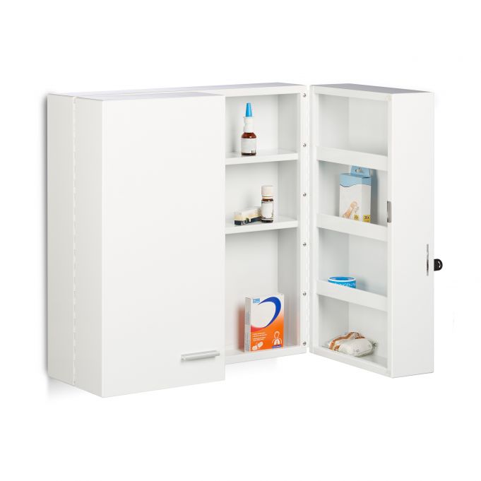 - Erdvumas: Itin erdvi spintelė su 11 skyrių, kur patogiai telpa tabletės, vaistai nuo galvos skausmo, tvarsčiai ir kiti reikmenys.