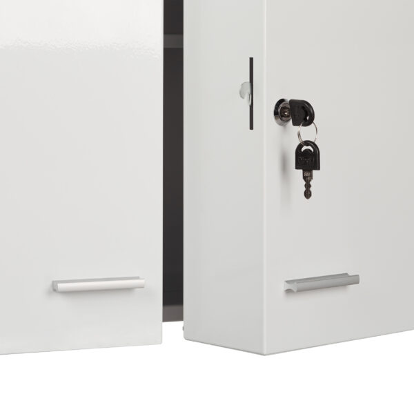 - Saugumas: Visi vaistai laikomi vaikams saugiai, nes dvi durys yra rakinamos ir turi magnetinį uždarymą.