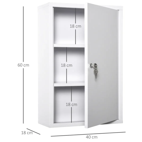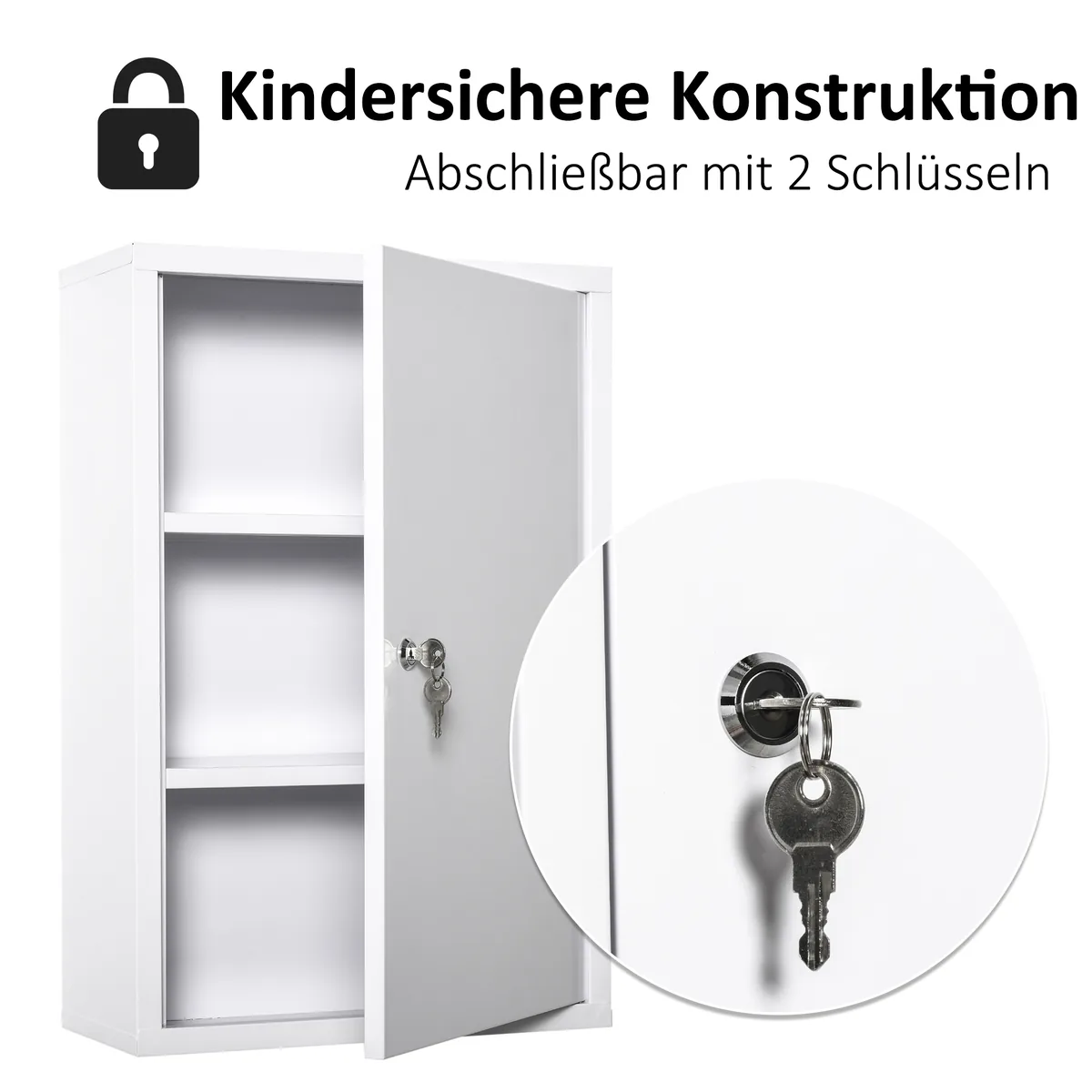 Namų ūkiams, kuriuose yra vaikų ir augintinių, labai svarbu, kad receptai ir vaistai būtų nepasiekiami. Būtent todėl ši 2 raktų medicininė sieninė spintelė yra būtina visuose namų ūkiuose. Jis pagamintas iš plieno su dažyta apdaila, tvirtos ir patvarios kompozicijos, kuri lengvai nerūdija, todėl ją galima saugiai laikyti savo vonios kambaryje. Viduje esančios lentynos leidžia tvarkyti ir atskirti vaistus, kuriuos reikia laikyti atokiai vienas nuo kito.