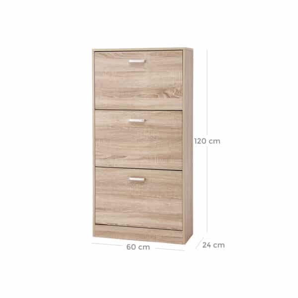 Pavargote kiekvieną rytą ieškoti konkrečios batų poros, atitinkančios jūsų aprangą? Su šia medine batų spintele su 3 atsiveriančiomis durelėmis LBC03NL laikykite visus savo batus vienoje vietoje. Ši 3 aukštų batų spintelė padės pertvarkyti krūvą sukrautų batų ir suteiks jūsų namams tvarkos bei estetikos.