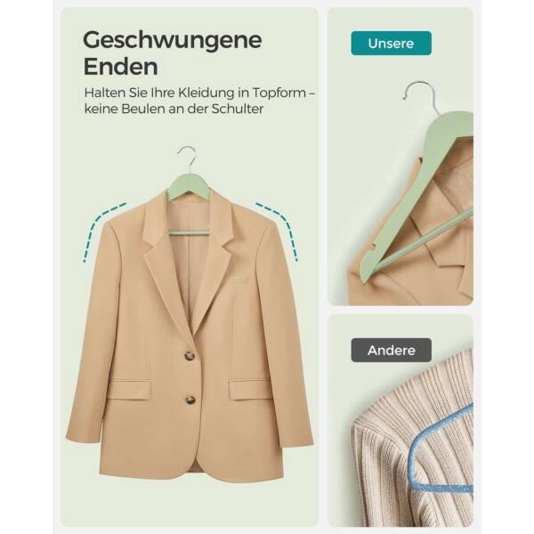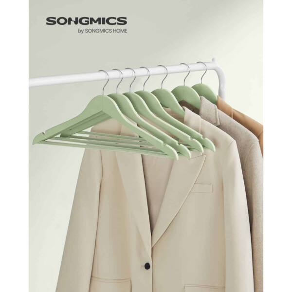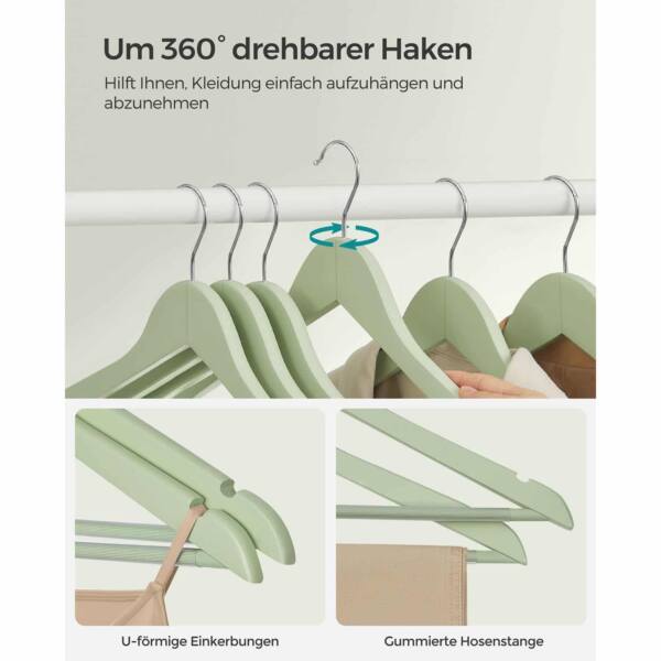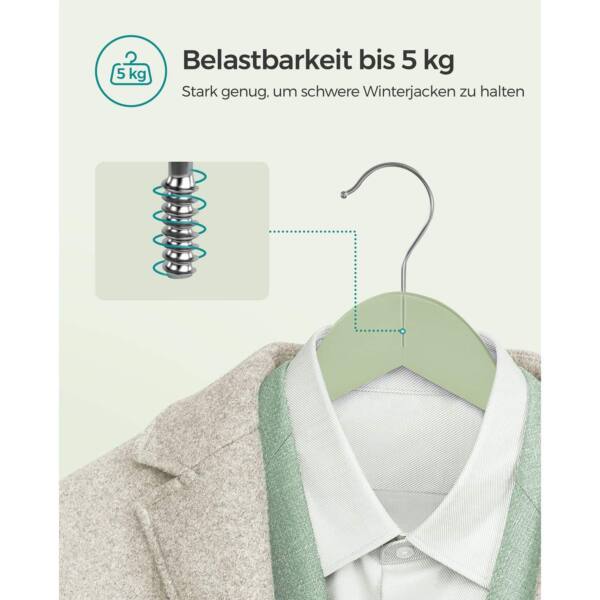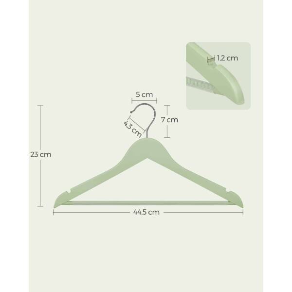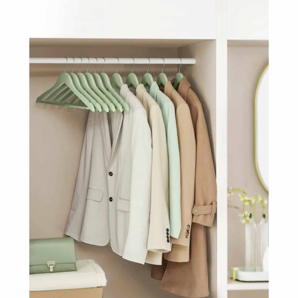 Šviesiai žalia-sidabrinė spalva suteikia elegancijos ir modernumo jūsų drabužinei ar spintai. Kiekviena pakaba yra kruopščiai suprojektuota, kad atitiktų jūsų poreikius ir padėtų išlaikyti drabužius tvarkingus bei nesusiglamžiusius.