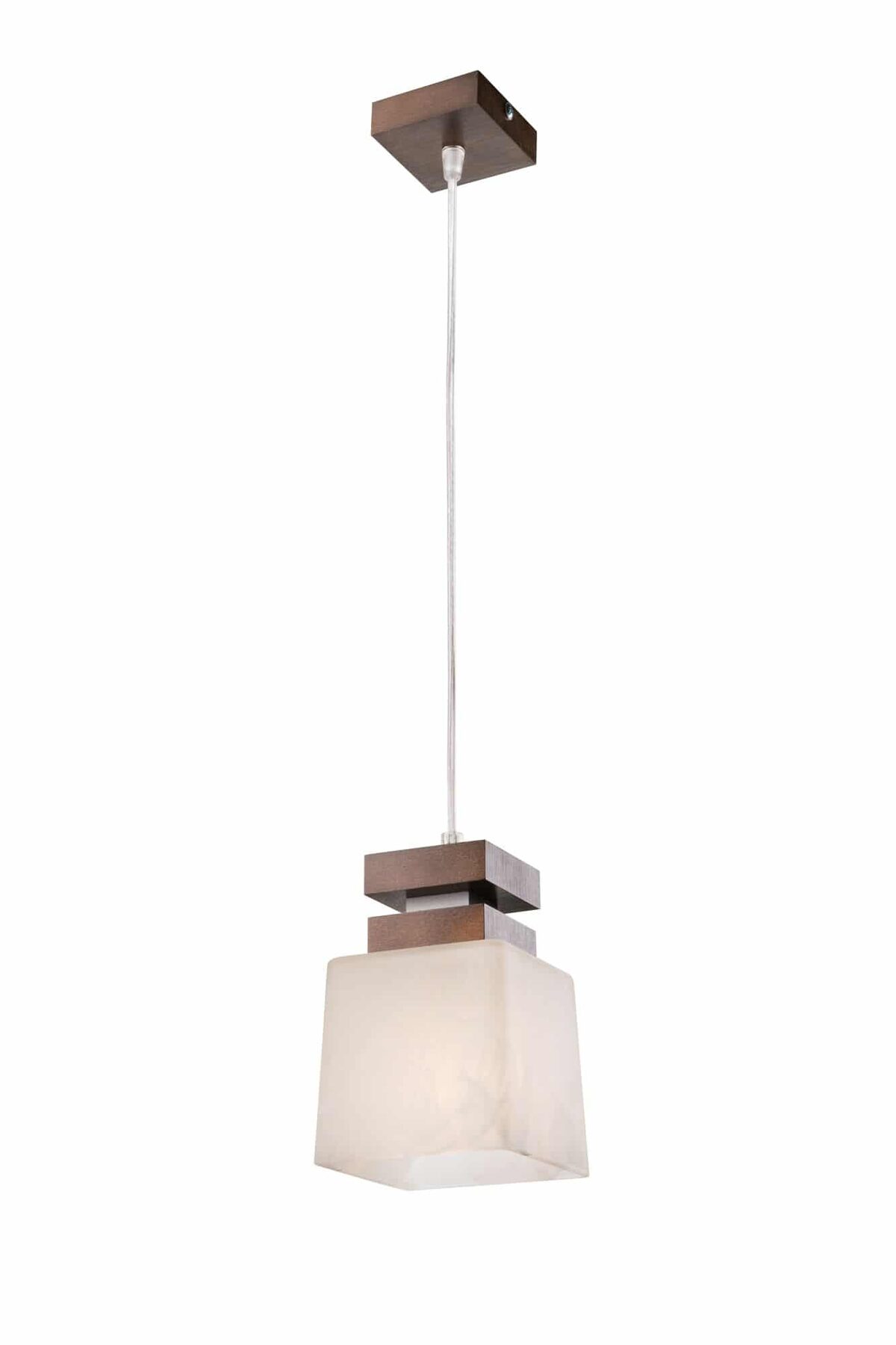 Medinis pakabinamas šviestuvas Kubus su stiklo gaubtu, tamsiai rudas