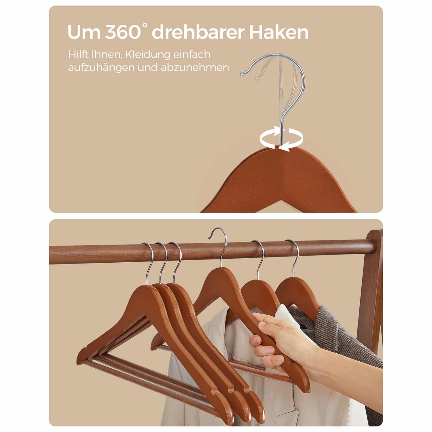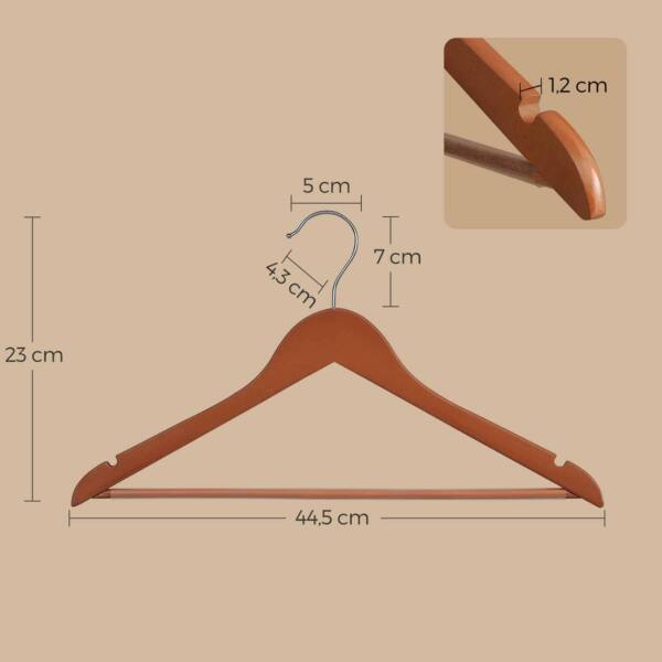 Šis medinių drabužių kabyklų rinkinys, 20 vnt., yra puikus pasirinkimas jūsų drabužių spintai. Kiekviena pakaba yra pagaminta iš aukštos kokybės klevo medienos ir turi metalinį kabliuką, užtikrinantį tvirtumą ir ilgaamžiškumą.
