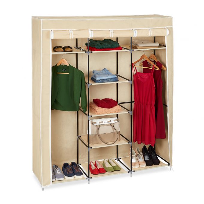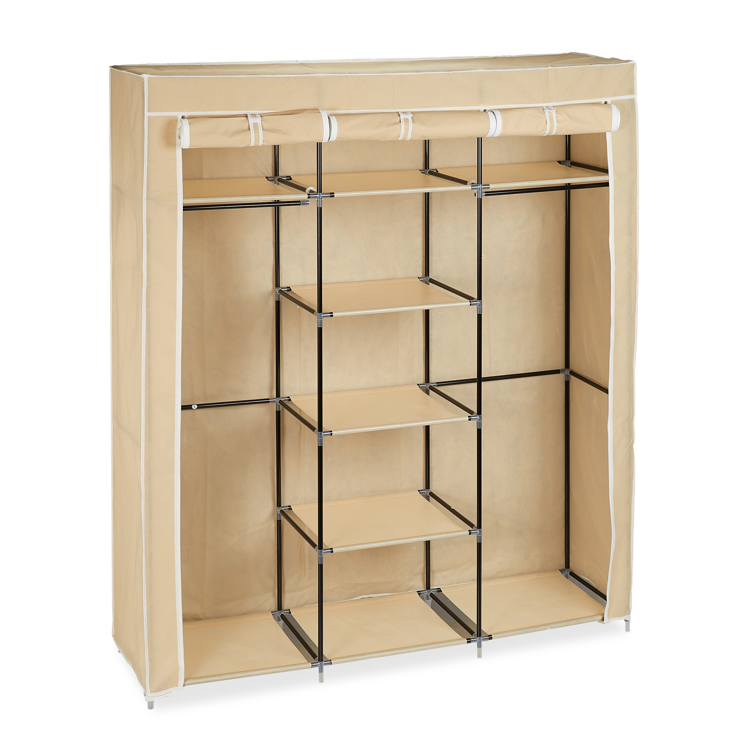 Medžiaginė drabužių spinta 173x148x43cm, smėlio/baltos spalvos