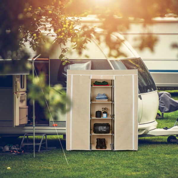 - Mobilumas: Lengvai sulankstoma ir greitai sumontuojama, todėl puikiai tinka kaip kelioninė spinta stovyklaujant.