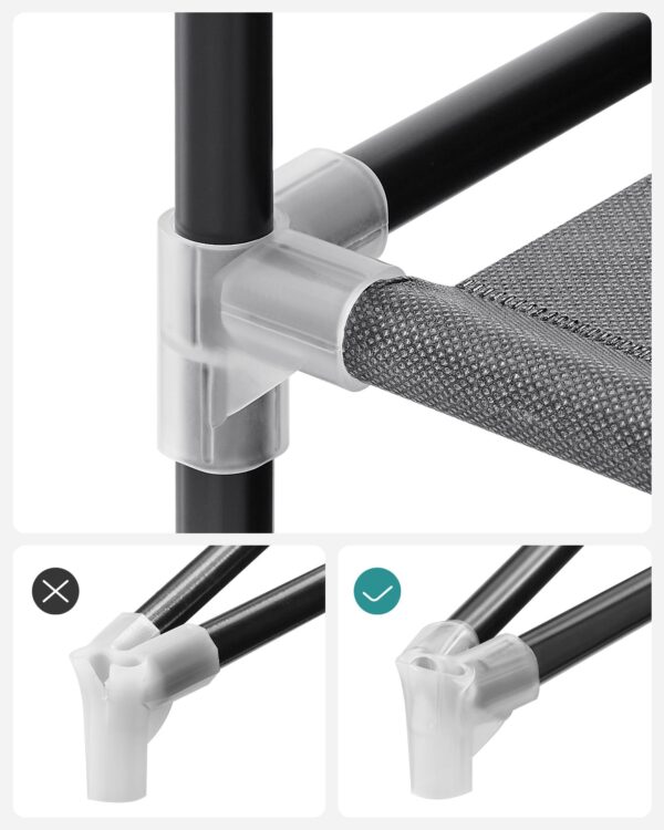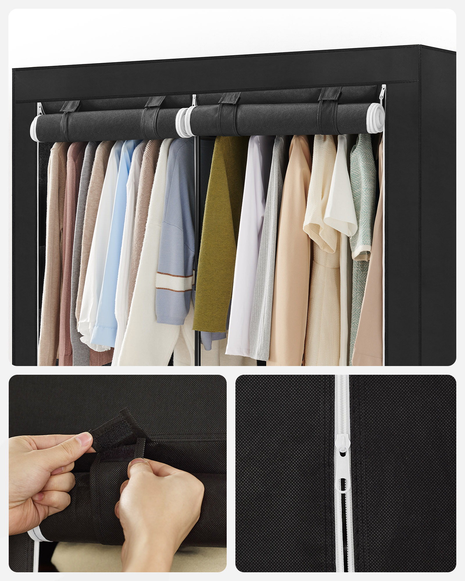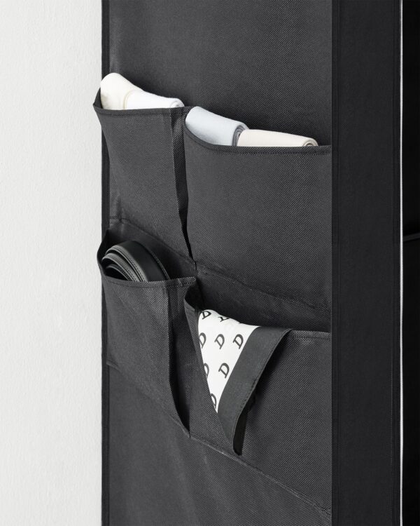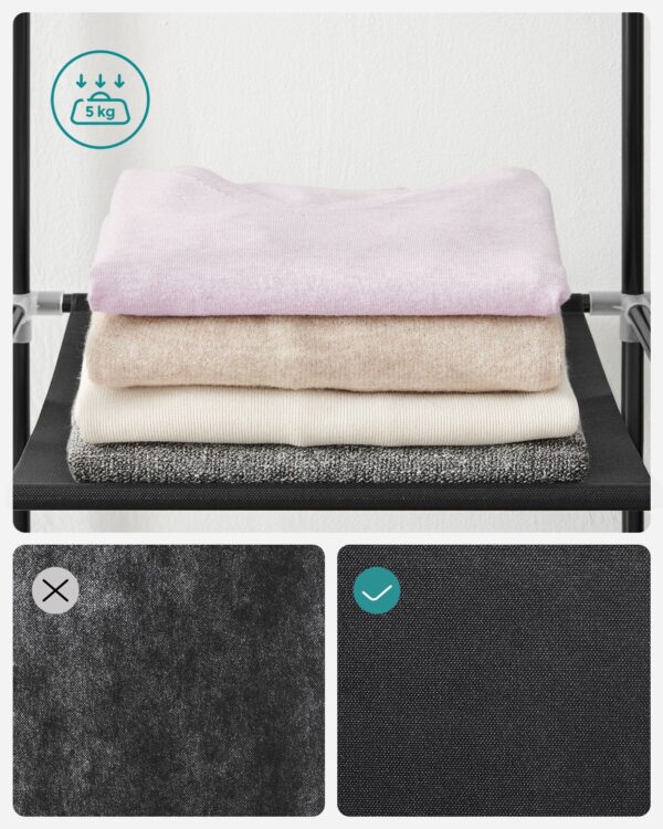Ši drabužių spinta yra ne tik lengva ir patogi perkelti, bet ir pakankamai tvirta, kad atlaikytų kasdienio naudojimo iššūkius. Jos konstrukcija iš plieno ir kokybiško neaustinio audinio užtikrina ilgaamžiškumą ir patikimumą. Tai puikus pasirinkimas tiek mažoms erdvėms, tiek didesniems kambariams, kur reikia papildomos vietos drabužiams laikyti.