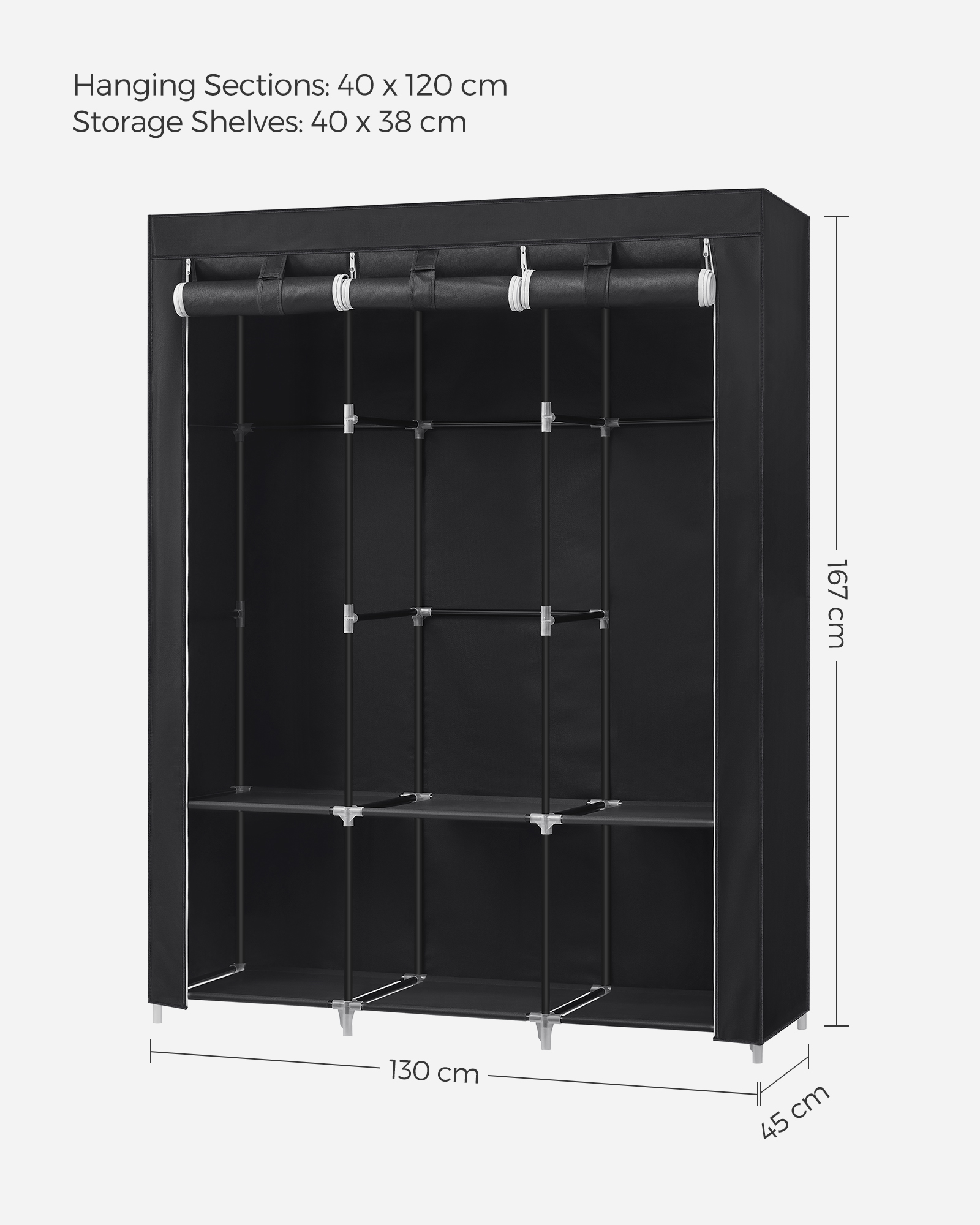 Medžiaginė drabužių spinta 45x130x167 cm, juodos spalvos