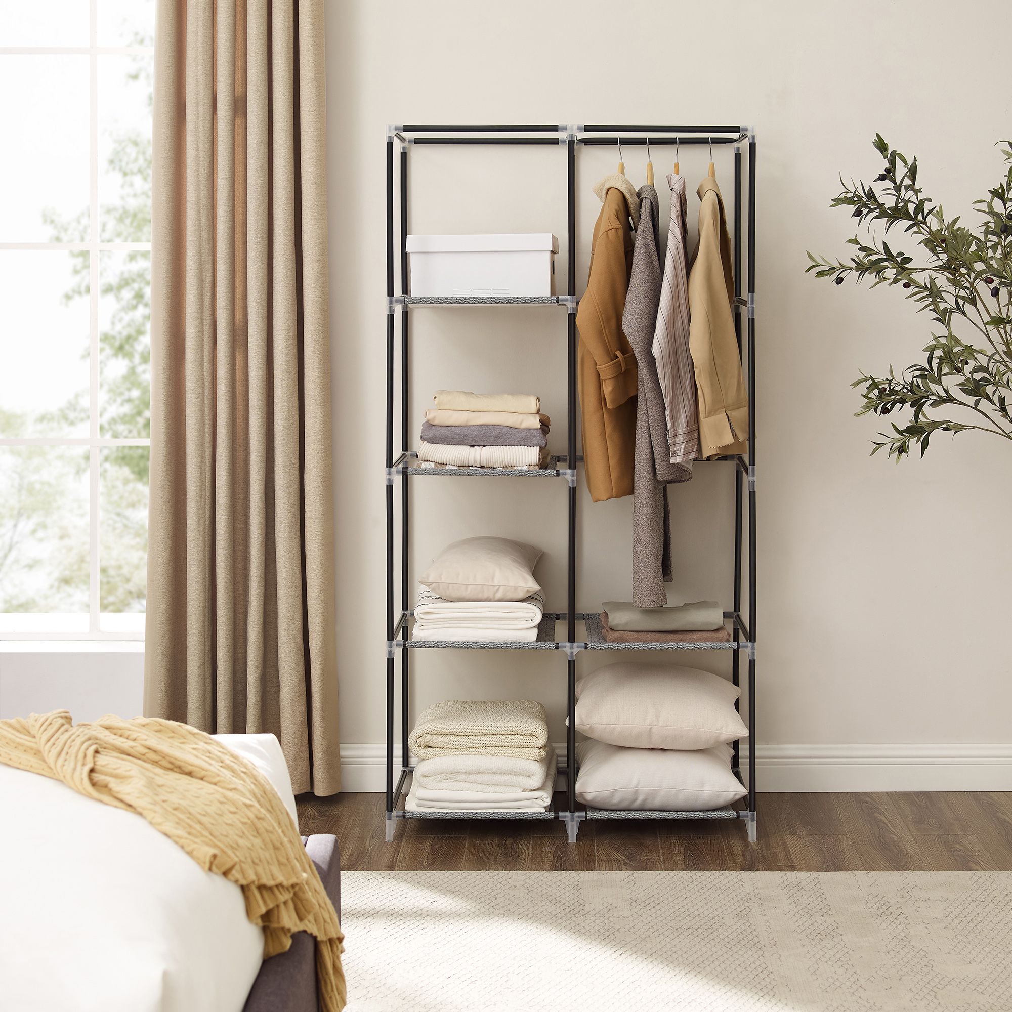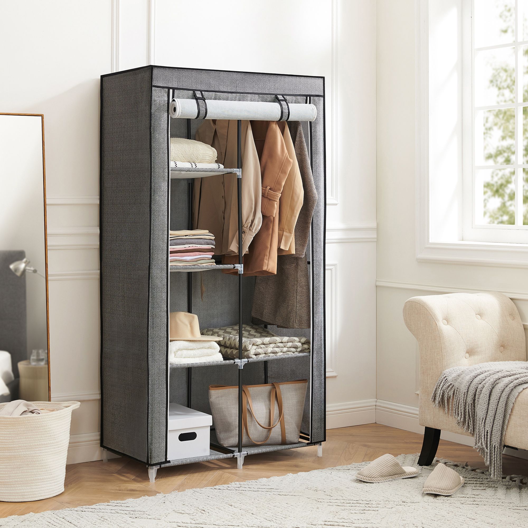 Medžiaginė drabužių spinta 88x45x168cm, pilkos/juodos spalvos