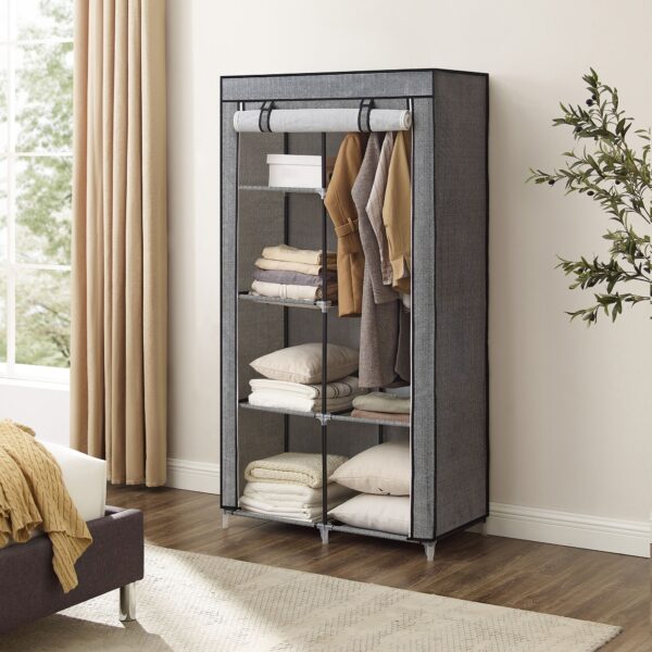 Ši drabužių spinta yra lengvai surenkama ir puikiai tinka tiek mažoms, tiek didelėms erdvėms. Jos tvirtas metalinis rėmas ir kokybiškas neaustinis audinys užtikrina ilgaamžiškumą ir patikimumą. Pasirinkite šią spintą, kad jūsų drabužiai būtų tvarkingai sudėti ir lengvai pasiekiami.