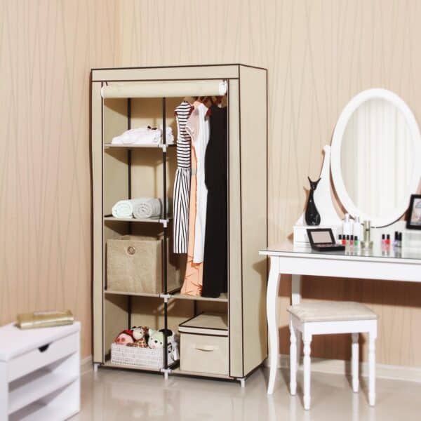 Ar jus visada erzina visur skraidantys drabužiai? O ar keičiant spintas pagal sezoną niekada neužtenka vietos atsargoms? Songmics medžiaginė spinta 88 x 45 x 170 cm, smėlio spalvos yra puikus sprendimas norint susigrąžinti tvarkingus namus. Spinta suteikia daug vietos, tai tikra „vietos taupytoja”, daug telpa ir sutalpina. Joje galima susidėti visokius daiktus, pavyzdžiui, patalynę, žieminius/vasarinius drabužius, batus ar pan. Drabužių kabykla ir lentynos taip pat leidžia praktiškai padalinti erdvę, kad spintelė būtų itin funkcionali.