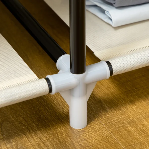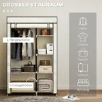 Ši HOMCOM medžiaginė spintelė jūsų namuose sutvarkys. Dėl savo universalaus dizaino ši spinta idealiai tinka bet kokiai patalpai, kuriai reikia papildomos vietos. Jame yra 1 drabužių kabykla ir 6 lentynos drabužiams, rankšluosčiams, patalynei ar krepšiams tvarkyti ir laikyti. Medžiaginis užvalkalas puikiai apsaugo jūsų daiktus nuo dulkių – idealus organizacinis sprendimas!