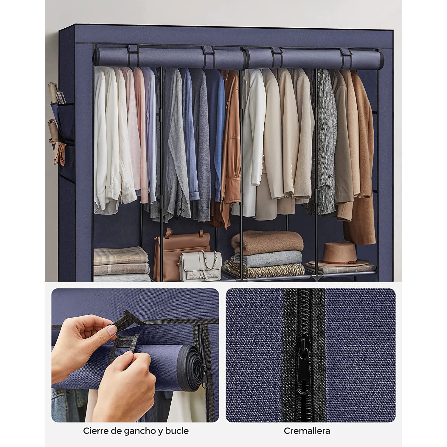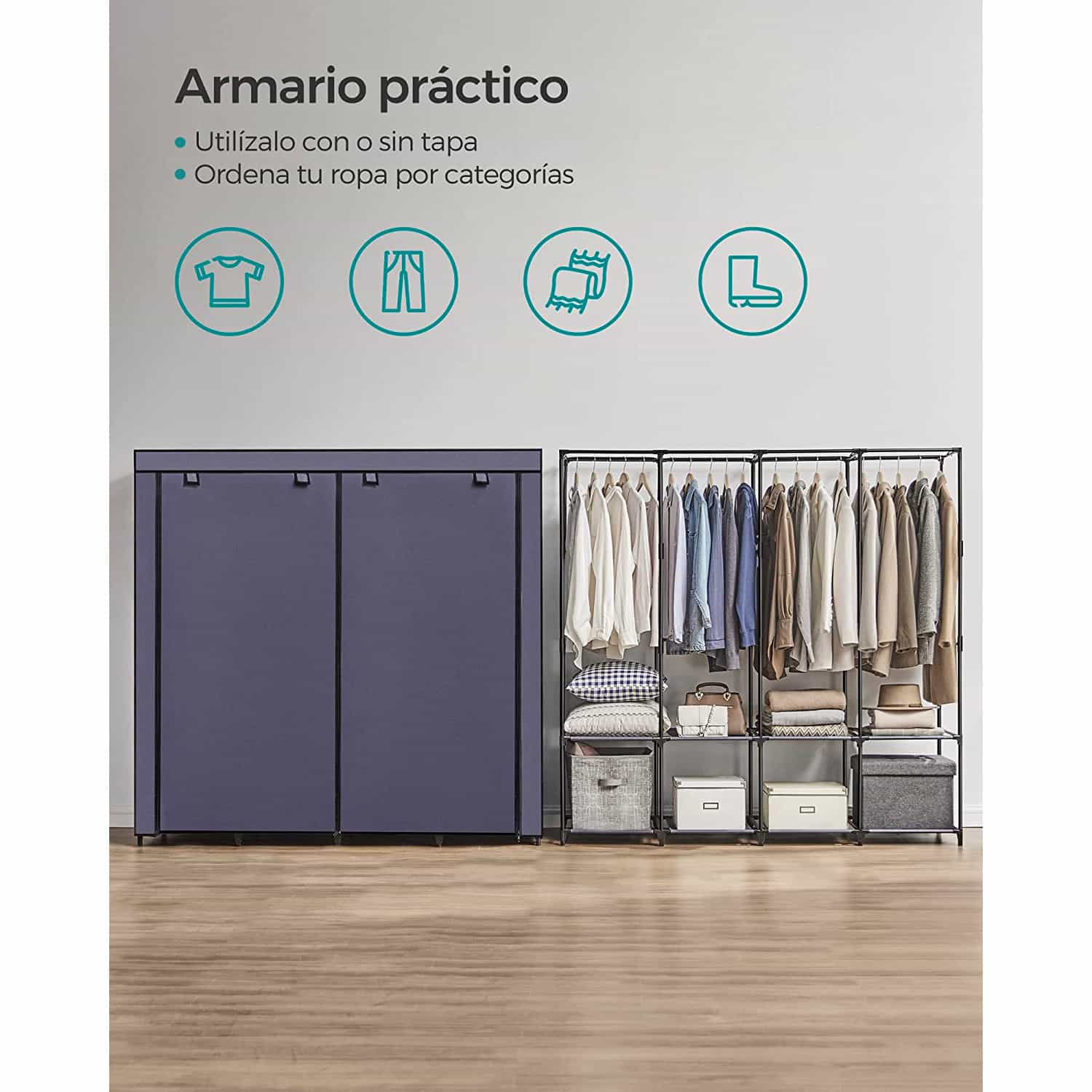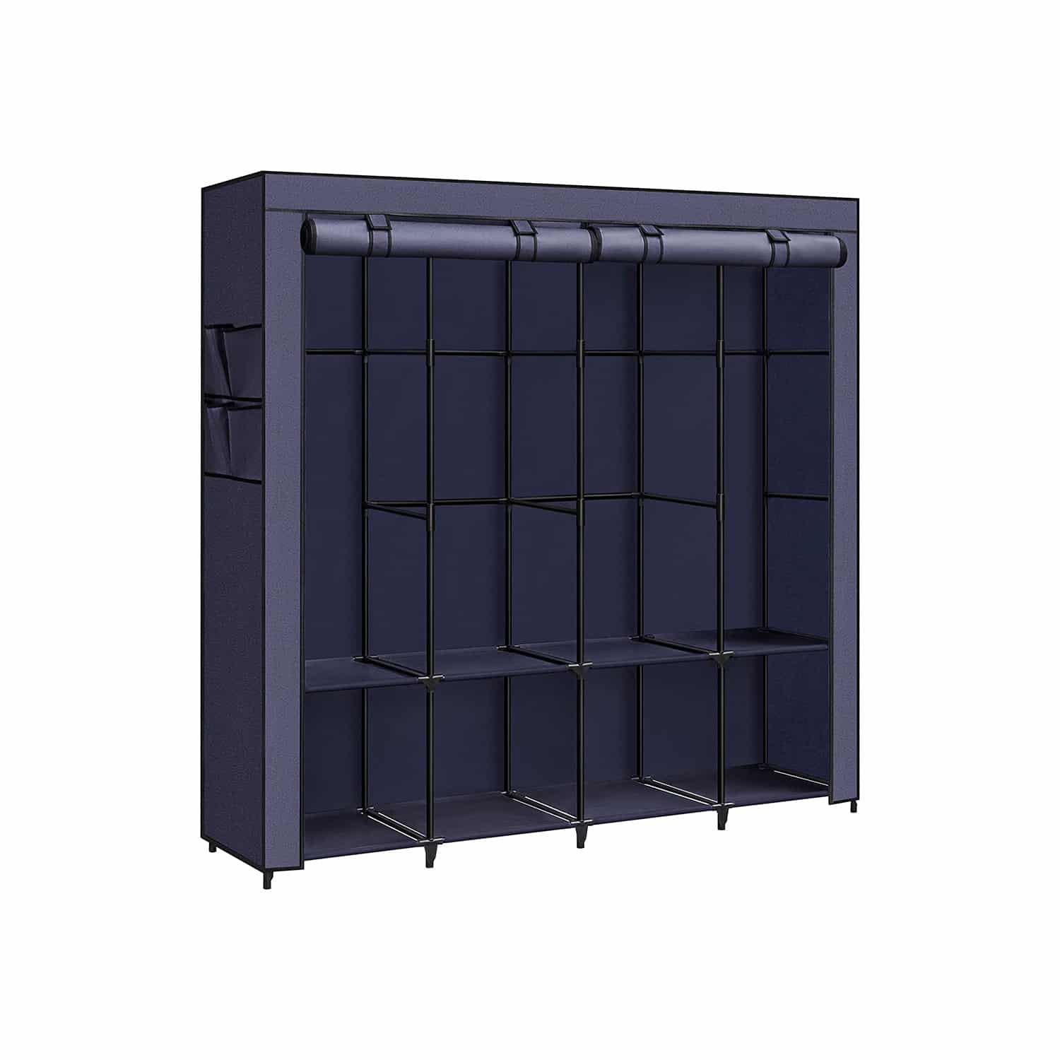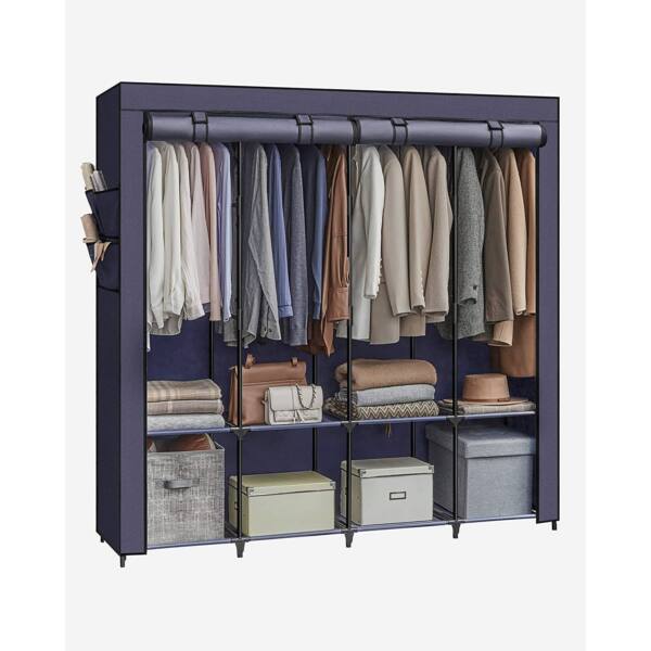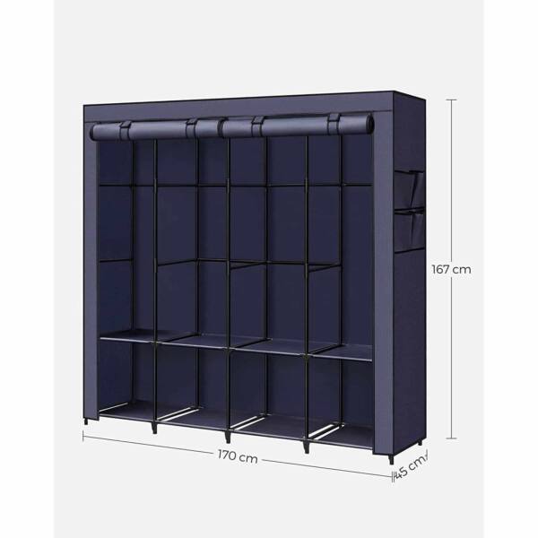 Medžiaginė spinta su 4 drabužių kabyklomis ir 4 šoninėmis kišenėmis, melsvos spalvos