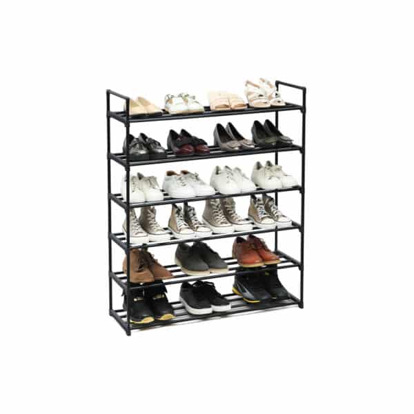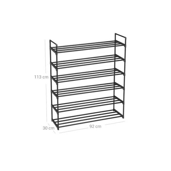 Ši metalinė batų spintelė su 6 skyriais yra puikus sprendimas tvarkingai laikyti batus. Juodos spalvos dizainas suteikia modernumo ir elegancijos jūsų namų interjerui.