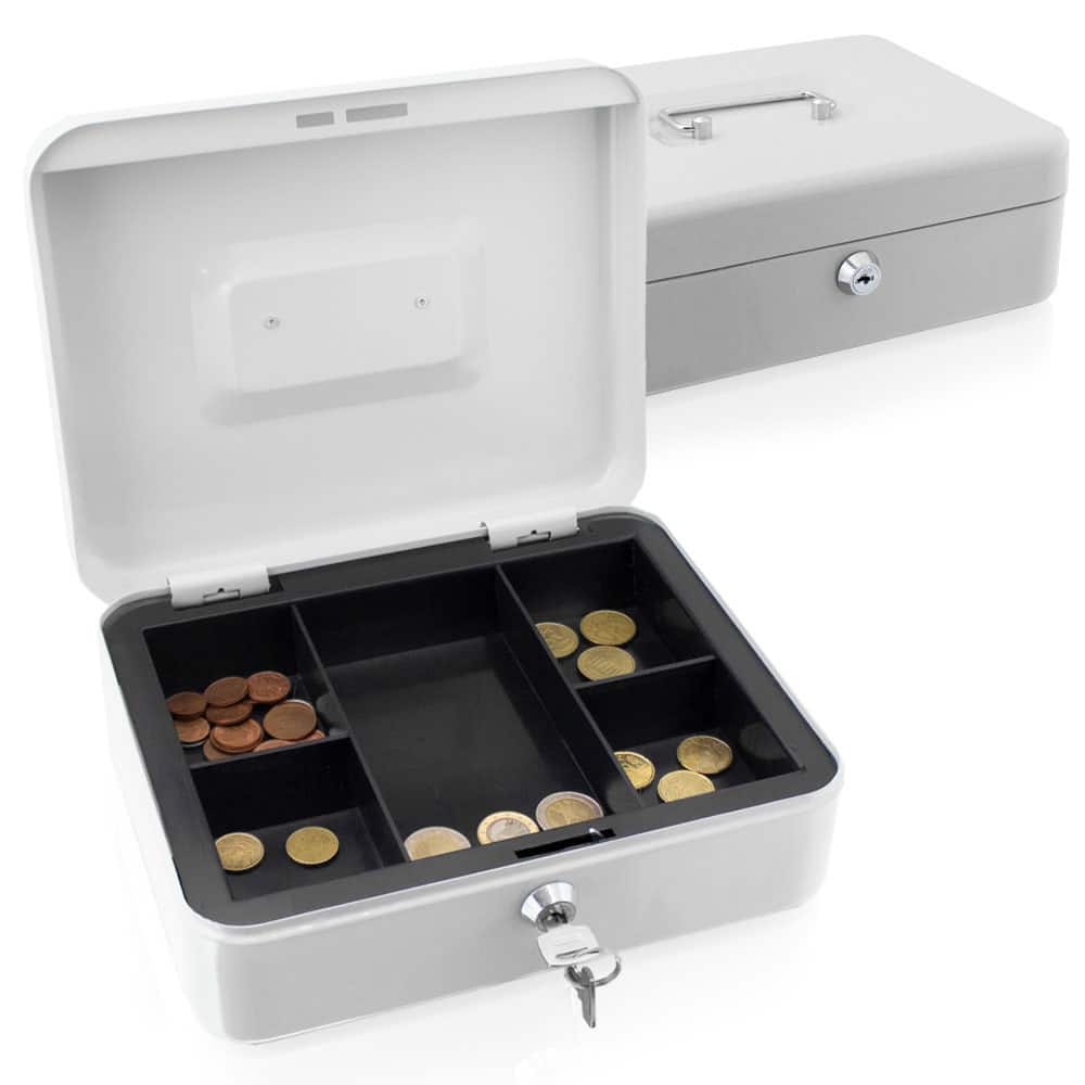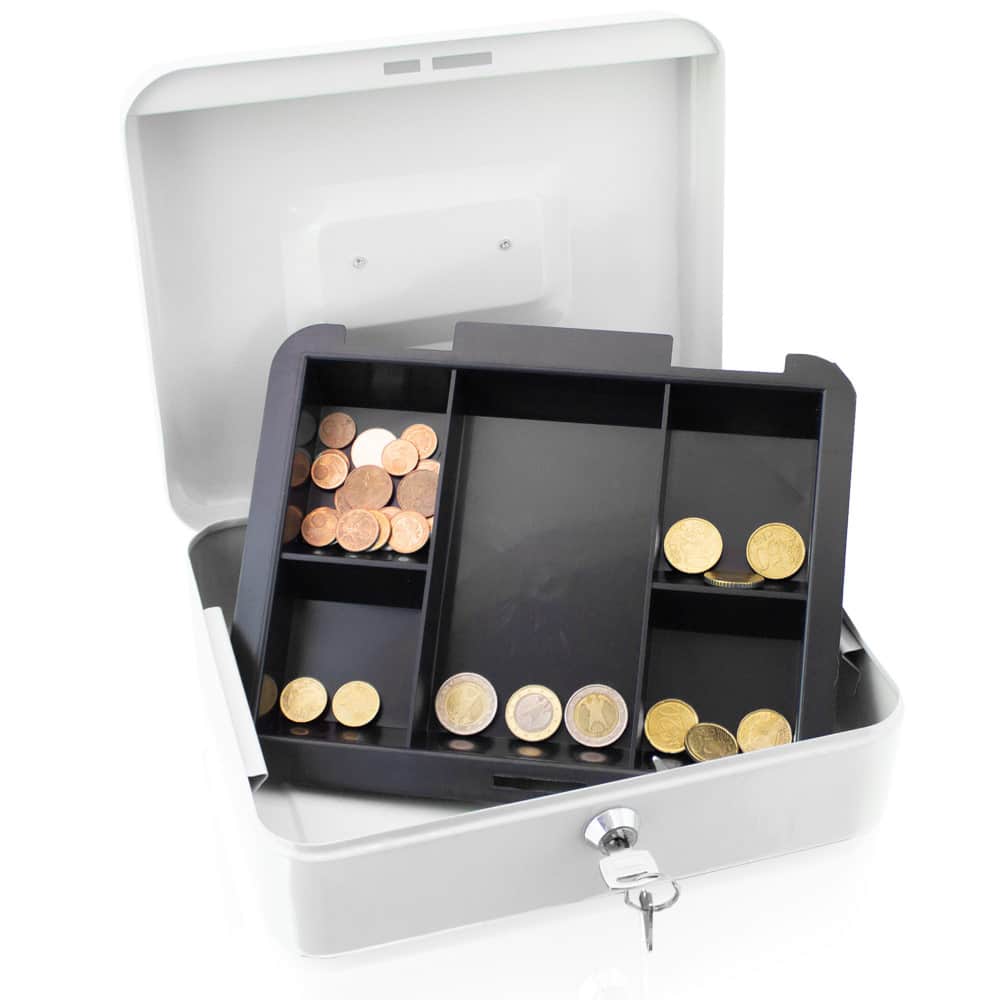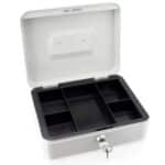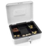Tvirtas DĖKLAS GRYNŲJŲJŲ MEDŽIAGŲ TRANSPORTAVIMUI IR LAIKYMUI 25 CM Visiškai naujas, kokybiškas metalinis dėklas skirtas monetoms, banknotams ar kitoms vertybėms laikyti ar gabenti.banknotams ir monetoms laikyti. Apačioje yra daug vietos, pavyzdžiui, sąskaitoms, kvitams, monetoms, banknotams ir kitiems naudingiems daiktams. Saugumo sumetimais dėžė rakinama raktu. Ergonomiška rankena palengvina transportavimą. ĮRANGA: – 5 skyriai banknotams/monetoms, – Nuimamas padėklas, – Praktiška transportavimo rankena, – Pridedami du raktai. Į RINKINĮ įtraukta: ;;; 1x Pinigų dėžutė 25 cm ;;; 2x raktai Techniniai duomenys: Matmenys: 250mm x 200mm x 90mm (P/G/A) Spalva: Šviesiai pilka Svoris: 1,1kg