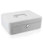 Metalinė dėžutė pinigams 25 cm., šviesiai pilkos spalvos