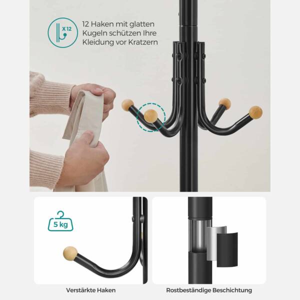 Ši metalinė drabužių kabykla, juodos spalvos, yra puikus sprendimas jūsų namams ar biurui. Ji ne tik funkcionali, bet ir stilinga, todėl puikiai derės prie bet kokio interjero.