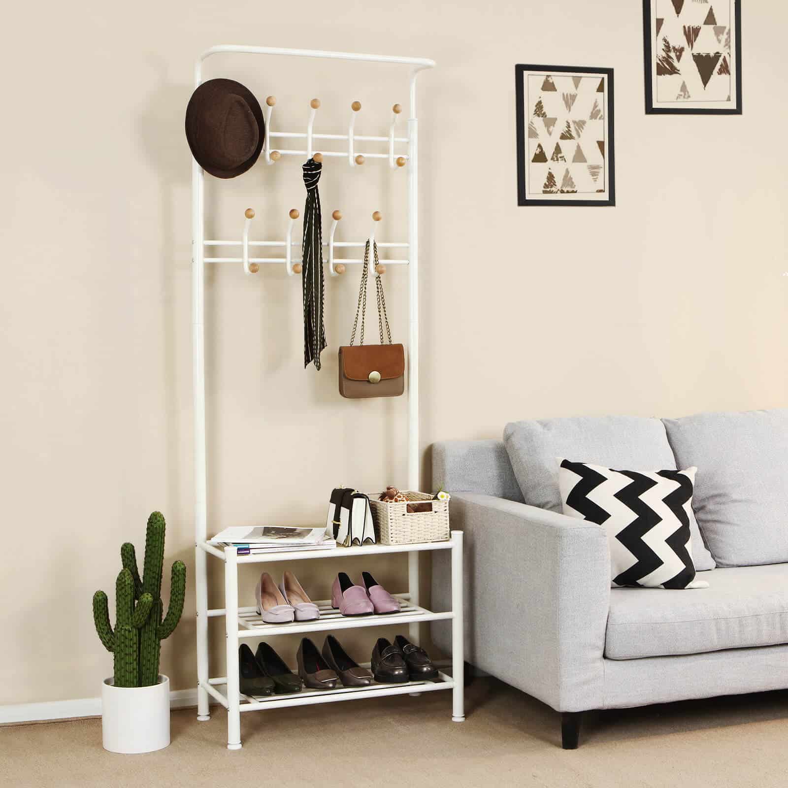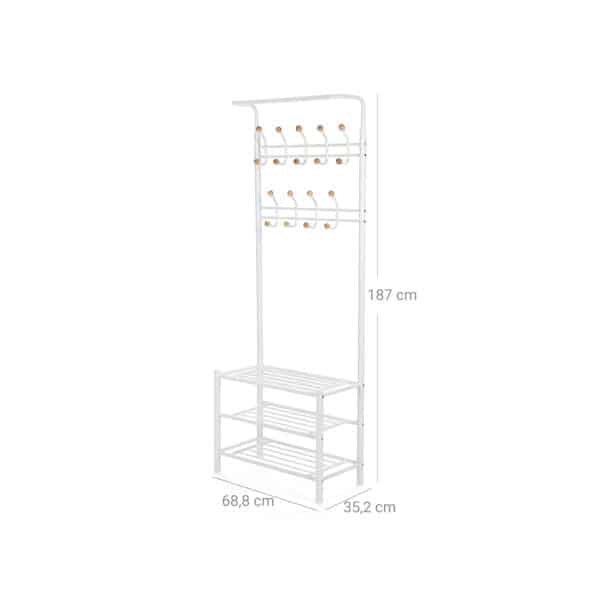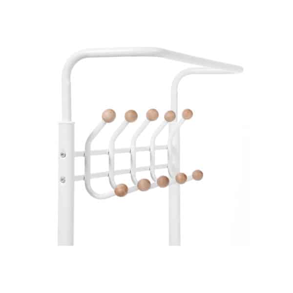 Komplekte yra apsaugos nuo apvirtimo, todėl prireikus galite pritvirtinti drabužių kabyklą prie sienos.