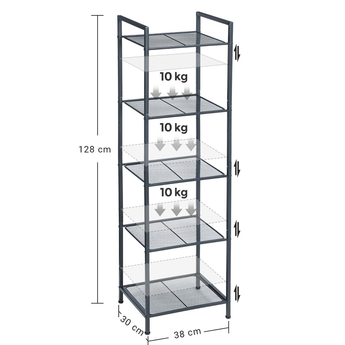 Kiekviena lentyna gali atlaikyti iki 10 kg svorį, o grindų tinklelio lentynos užtikrina gerą stabilumą ir atsparumą. Reguliuojamos kojelės kompensuoja nedidelius grindų nelygumus, o paprastos ir suprantamos instrukcijos bei aiškiai pažymėtos dalys leidžia lengvai surinkti lentyną.