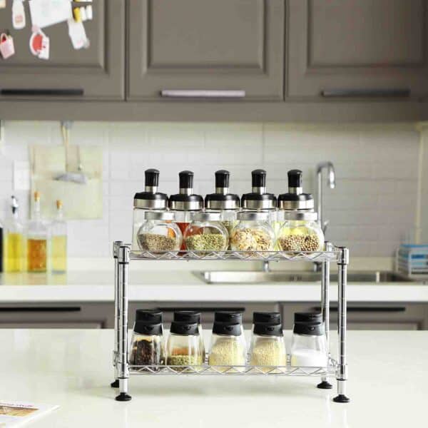 Įvairovė yra gyvenimo prieskonis. Tačiau kuo daugiau stiklinių ir butelių turite, tuo sunkiau palaikyti tvarką virtuvėje. Įsigykite šią erdvią 2 aukštų prieskonių lentyną ir laikykite prieskonius tvarkingai ir po ranka. Viskas, ką dabar turite padaryti, tai patobulinti savo maisto gaminimo įgūdžius.
