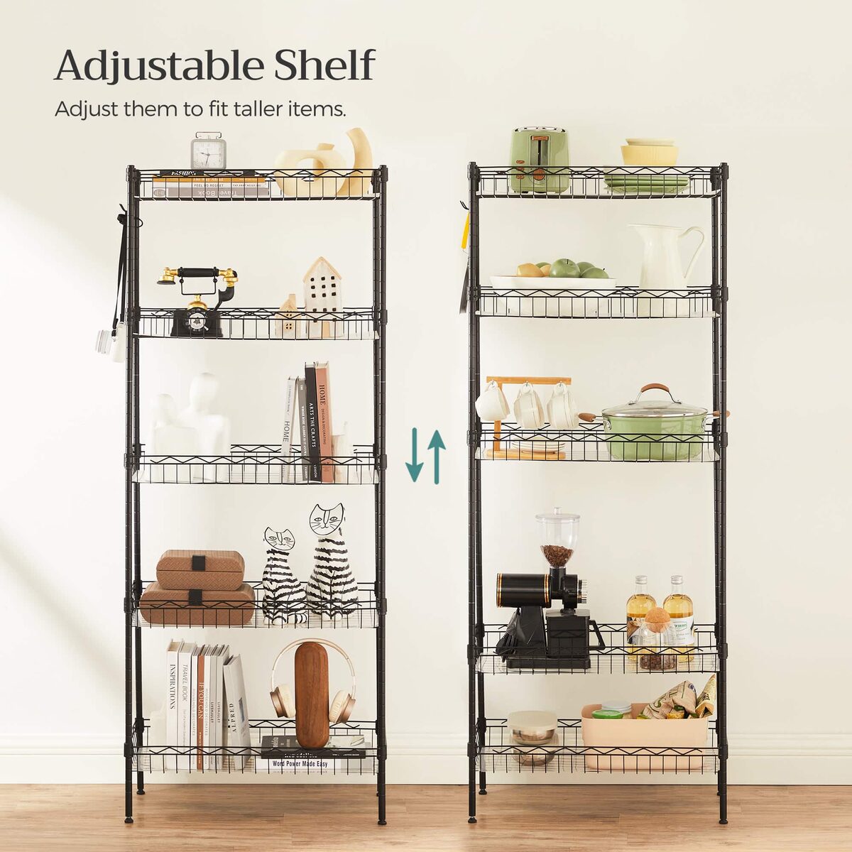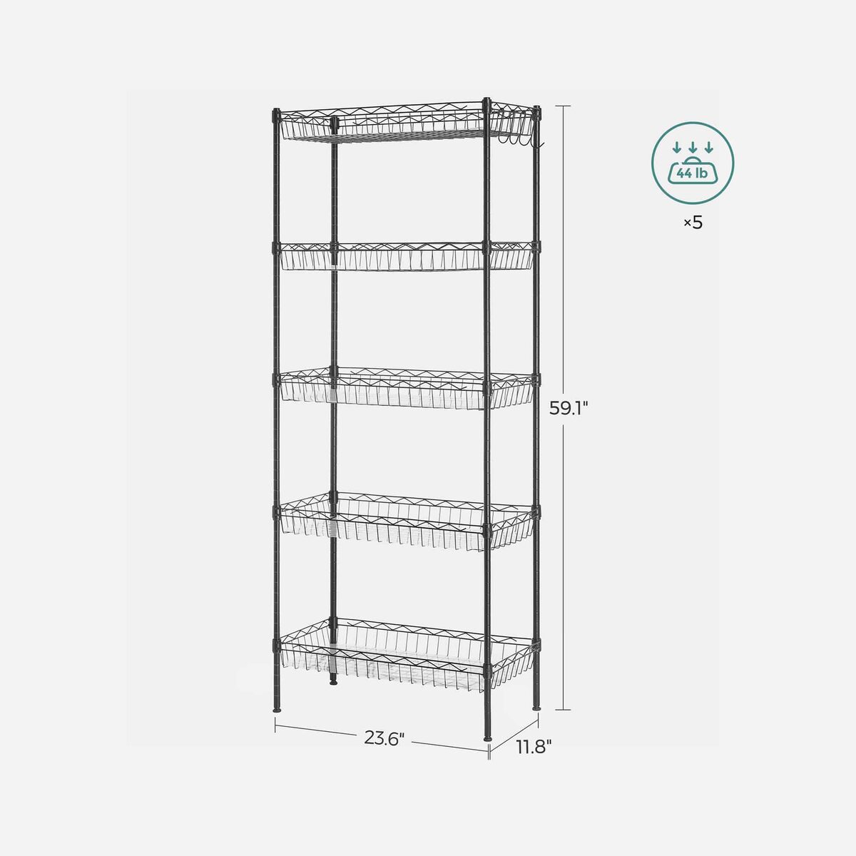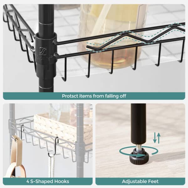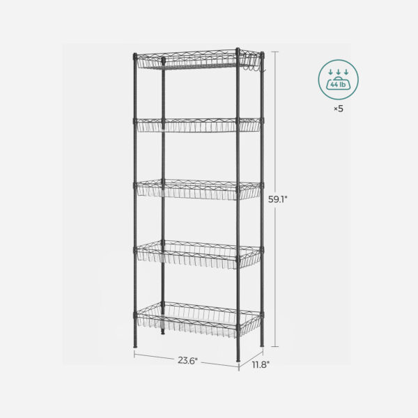 Lentynos matmenys yra 60 x 30 x 150 cm , o jos svoris siekia 5,4 kg. Kiekvienas lentynos lygis gali atlaikyti iki 20 kg statinę apkrovą, todėl galite saugiai laikyti įvairius virtuvės reikmenis ir produktus.
