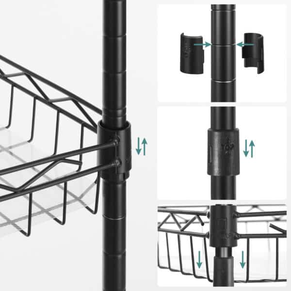 Ši metalinė virtuvės lentyna yra puikus sprendimas jūsų virtuvės organizavimui. Juodos spalvos plieninė konstrukcija užtikrina ilgaamžiškumą ir modernų dizainą, kuris puikiai derės prie bet kokio interjero.