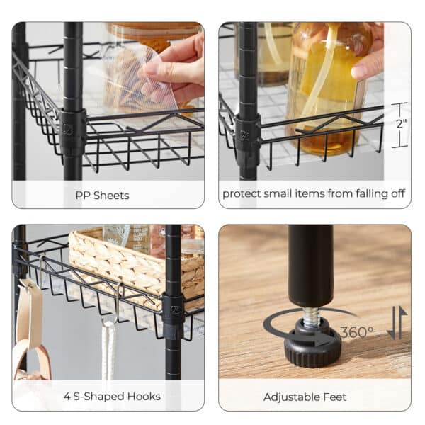 Virtuvėje? HEROJUS: Jūsų stalviršis pilnas puodų, prieskonių, dubenėlių ir kitų maisto ruošimo reikmenų, o jūs turite mažai vietos pasigaminti savo didelę vakarienę? Ši aukšta lentyna padės išbristi iš bėdų. Išdėstykite viską 5 lygiuose, nuvalykite stalviršį ir pasiruoškite nustebinti savo svečius!