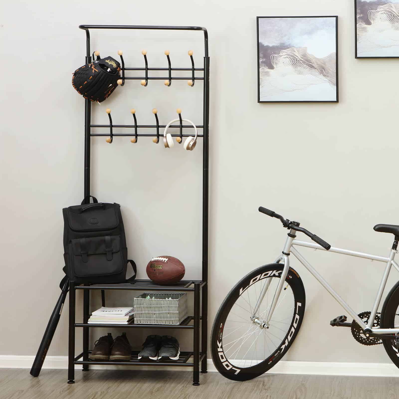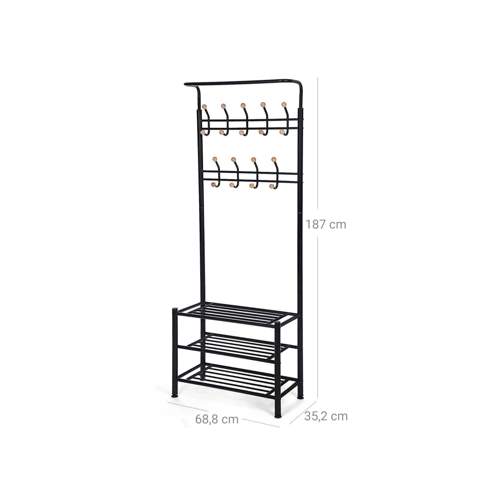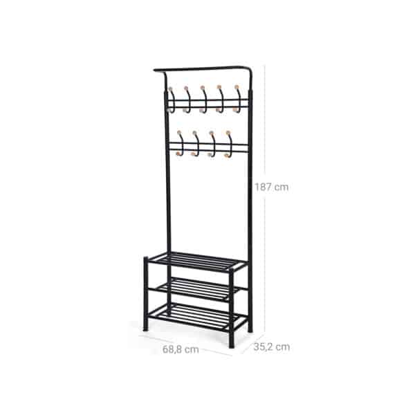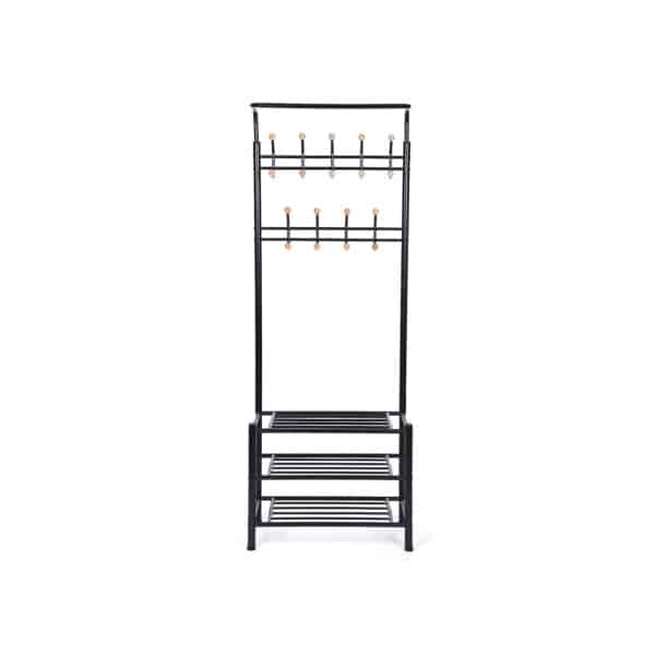 Šis juodas metalinis drabužių stovas yra puikus pasirinkimas jūsų namams ar biurui. Pagamintas iš milteliniu būdu dengtos geležies, jis yra tvirtas ir ilgaamžis.