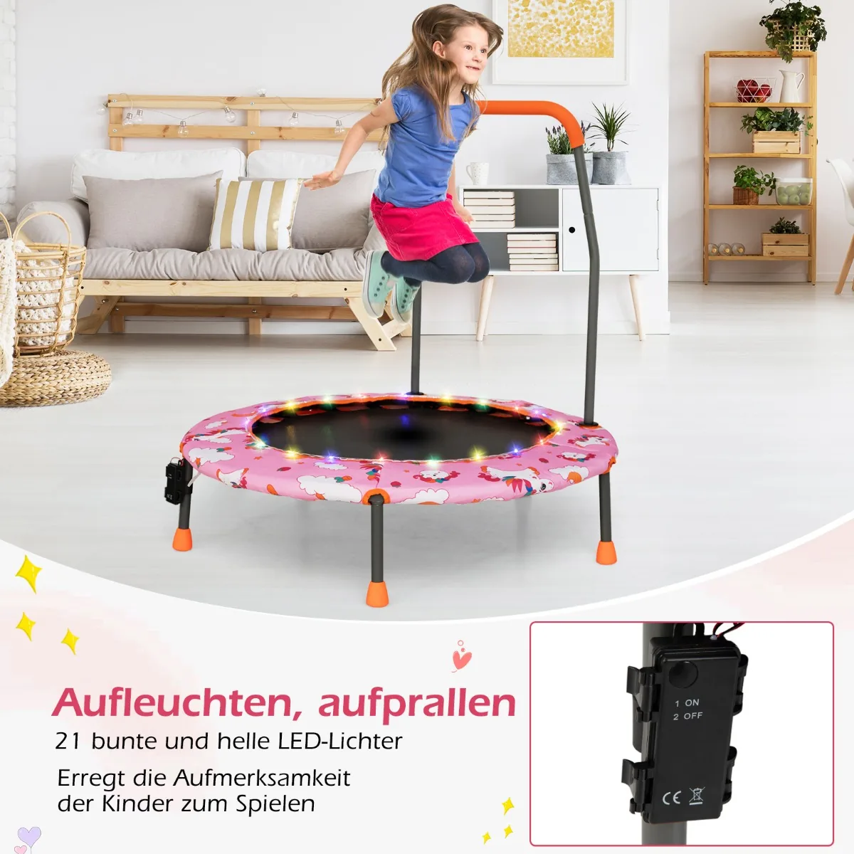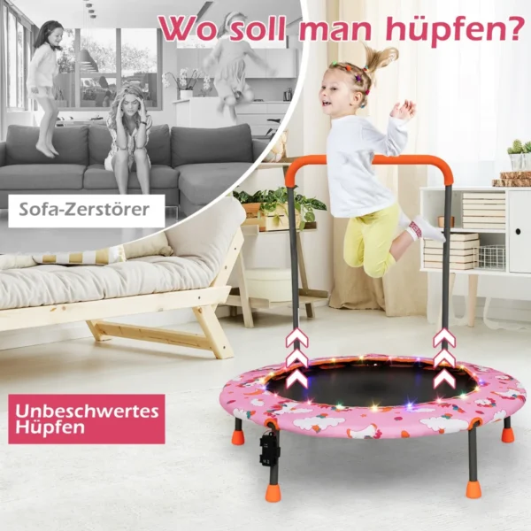 - Nuimama rankena su putplasčiu leidžia vaikams patogiai suimti batutą šokinėjant ir yra pritaikyta vaikams augant.