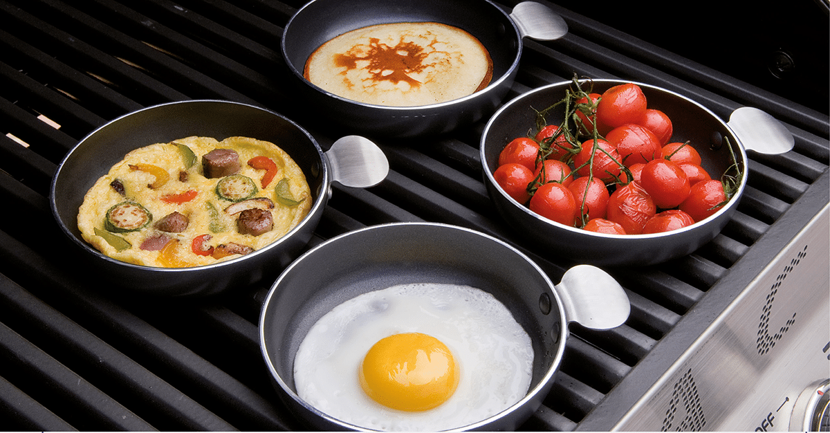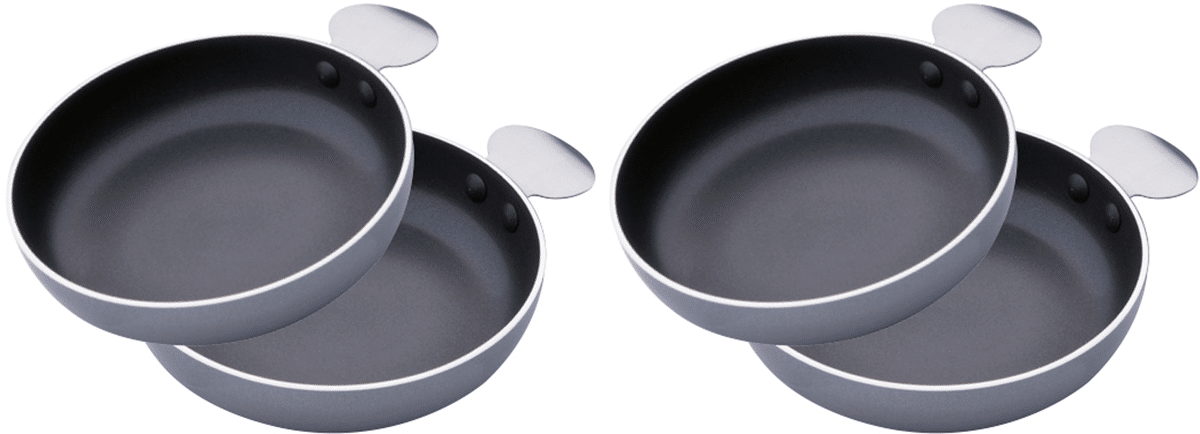 Rinkinys iš 4 mažų keptuvių (12cm) iš aliuminio su nepridegančia danga. Jie puikiai tinka ruošiant kiaušinius įvairiais būdais vienu metu. Jie taip pat puikiai tinka gaminti skanius tapas. Juos lengva plauti, jie yra lengvi ir gali būti naudojami ant grotelių, taip pat namuose ar stovyklavietėje. skersmuo: 12 cm