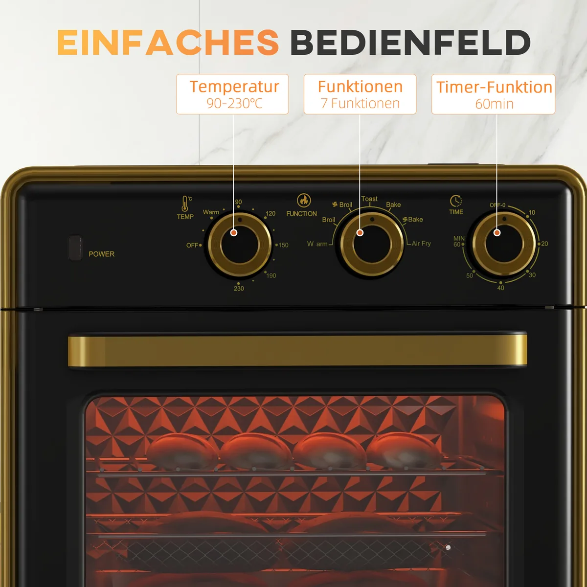- ✔ Daugiafunkcinė mini orkaitė iš HOMCOM su 5 funkcijomis: šiltas palaikymas, kepimas ant grotelių, skrudinimas, kepimas ir kepimas giliai.
