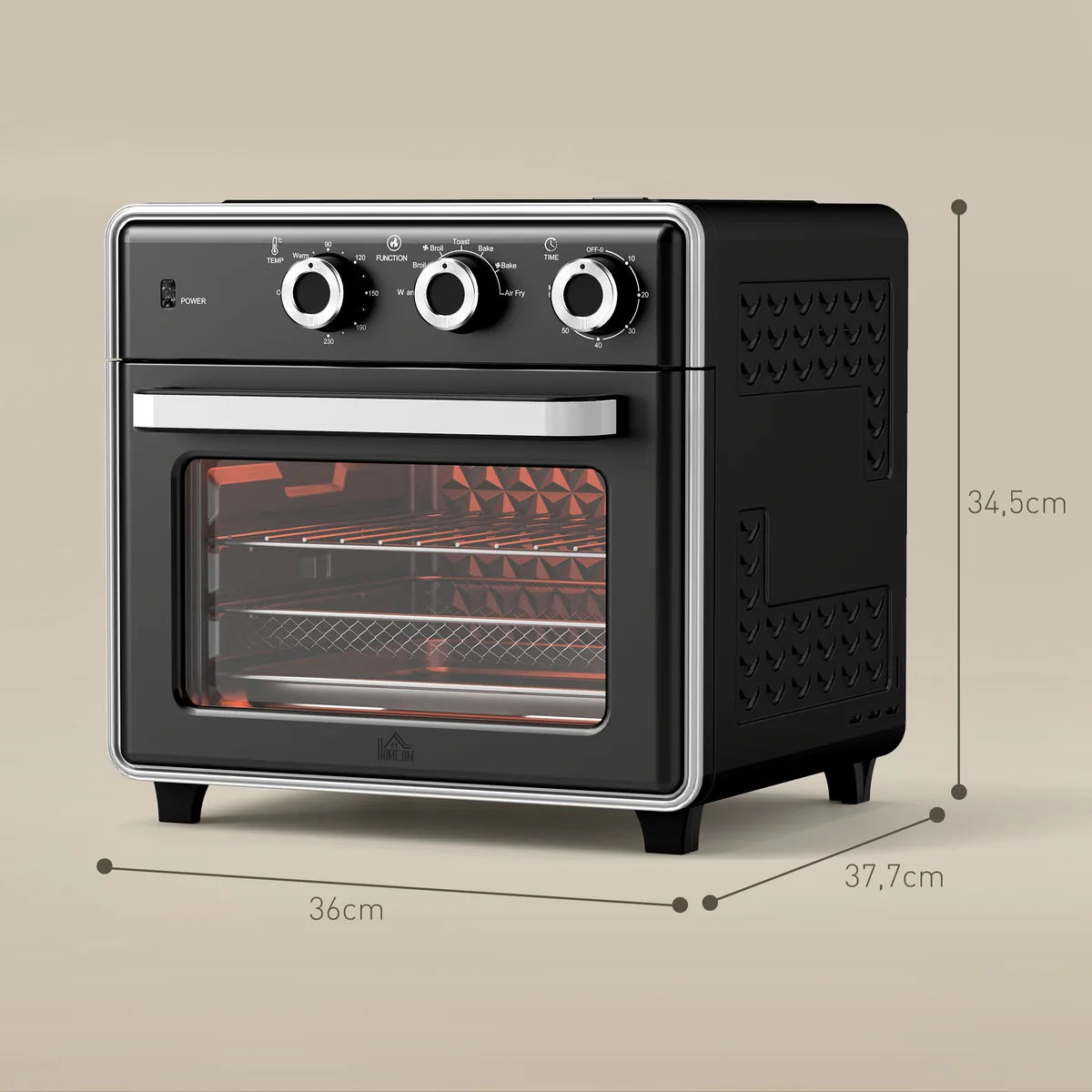 - ✔ Daugiafunkcinė mini orkaitė iš HOMCOM su 5 funkcijomis: šiltas palaikymas, kepimas ant grotelių, skrudinimas, kepimas ir kepimas giliai.