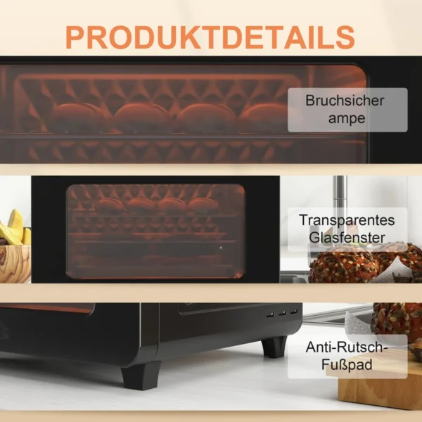 - ✔ Trijų pakopų dizainas mini orkaitė su indaplove, kepimo skardine, kepimo indaplovėje saugia rankena