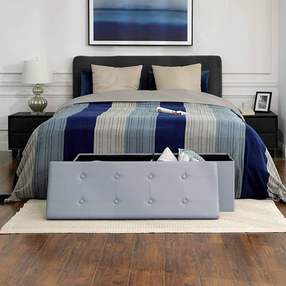 Sutaupysite daugiau vietos nei su sofa ar drabužių spinta. Užuot pirkę kitą sofą papildomai sėdėti svetainėje arba naują spintą, kad miegamajame būtų daugiau vietos, galite pasirinkti šią kėdutę. Padėkite ją priešais savo sofą arba prie lovos kojos ir įdėkite patalynę ar pižamą.