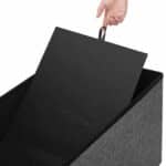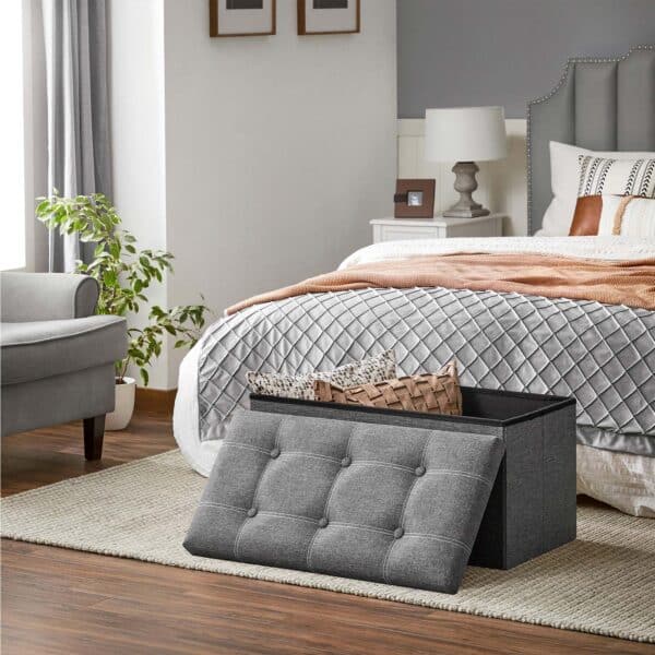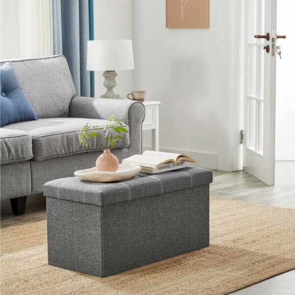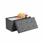 Jūsų pačių lobių skrynia: nors šioje skrynioje aukso gal ir nėra, tačiau jos išorė yra stilinga, dekoruota sagomis ir pagaminta iš lino imitacijos audinio. Viduje rasite erdvią daiktų laikymo vietą, kurios talpa siekia net 80 litrų – tai tikrai neblogai!