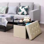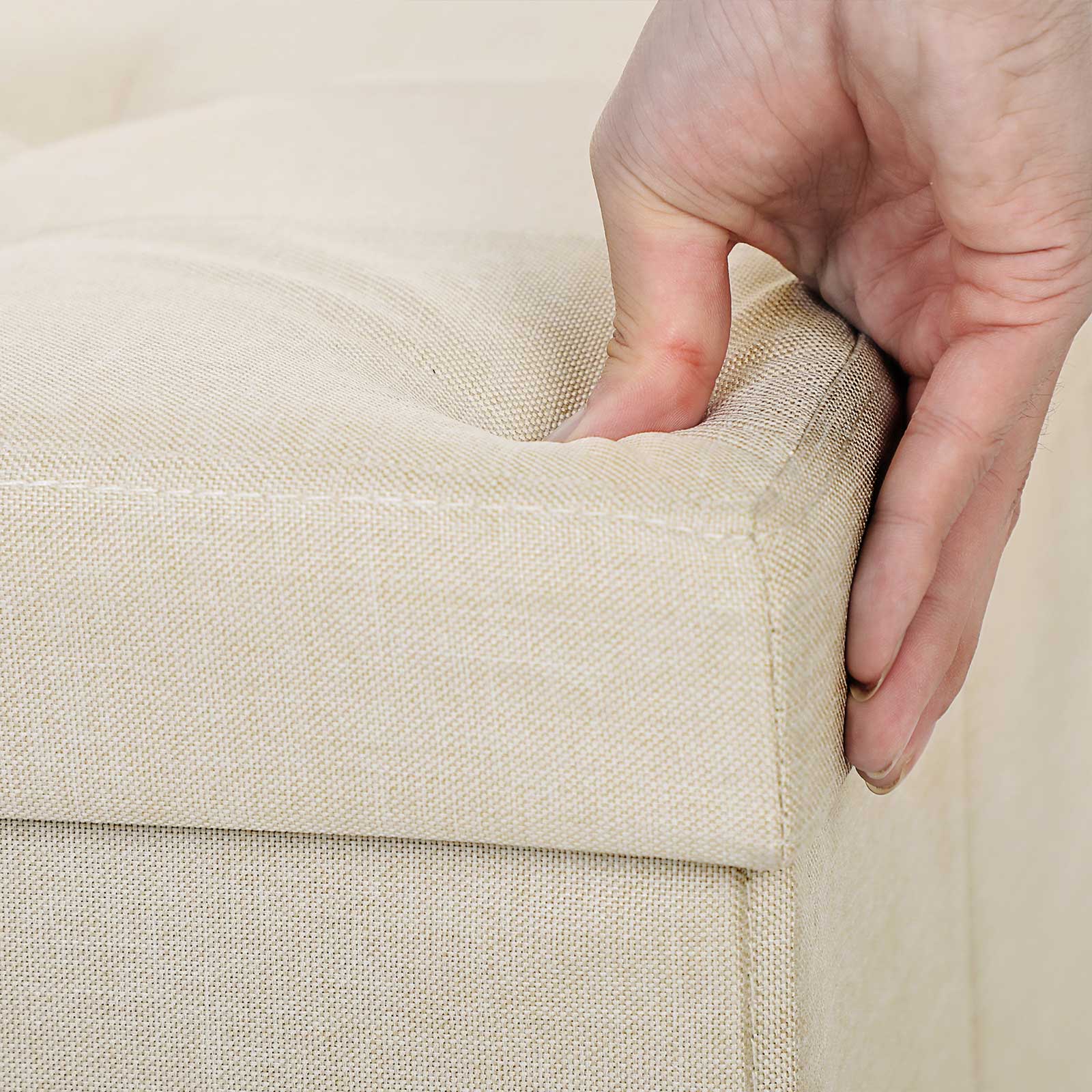 Minkšta sėdimoji vieta su atlenkiamu dangčiu, smėlio spalvos