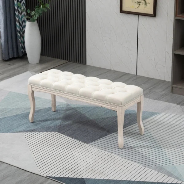 Sukurkite savo namuose akimirksniu ir patogiu židinio tašku naudodami šį gražų, minkštą HOMCOM suolą. Lininės išvaizdos viršutinė dalis ir klasikinės išlenktos kojelės suteikia šiai pufai vintažinio žavesio, o sagų užsegimas suteikia papildomos elegancijos. Suoliukas gali būti naudojamas kaip valgomojo suolas, lango sėdynė, lovos kėdė ir batų keitimo suolas. Palepinkite save kažkuo labai ypatingu – rinkitės šį nesenstantį pufą iš HOMCOM.