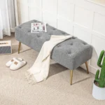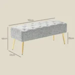 • ✔ Šiuolaikinio stiliaus lovos suoliukas su auksu dengtomis kojomis ir susiuvimu mygtukais kaip dekoratyvinis akcentas patalpose, lovos ar lango apdaila