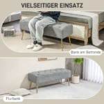 Minkštas suolas Homcom 112x41x46cm., pilkos/auksinės spalvos