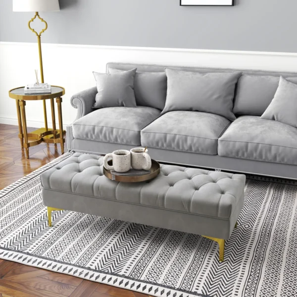 Įneškite į savo namus grynos prabangos. Mūsų apmušta HOMCOM taburetė idealiai tinka jūsų svetainei, miegamajam, prieškambariui ir kt. Elegantiška forma ir aksominės detalės kartu su keturiomis auksinėmis kojelėmis paverčia šią minkštą taburetę absoliučiai akį traukiančia. Tinka kaip taburetė arba paminkštintas šoninis staliukas. Pasilepinkite prabanga, kurios nusipelnėte.